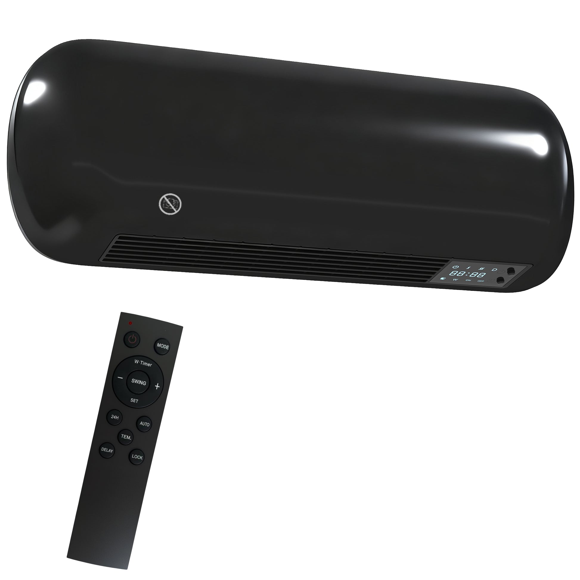 2000W Ceramic Electric Heater with Fan, Adjustable Thermostat, Wall Mounted - White / Black