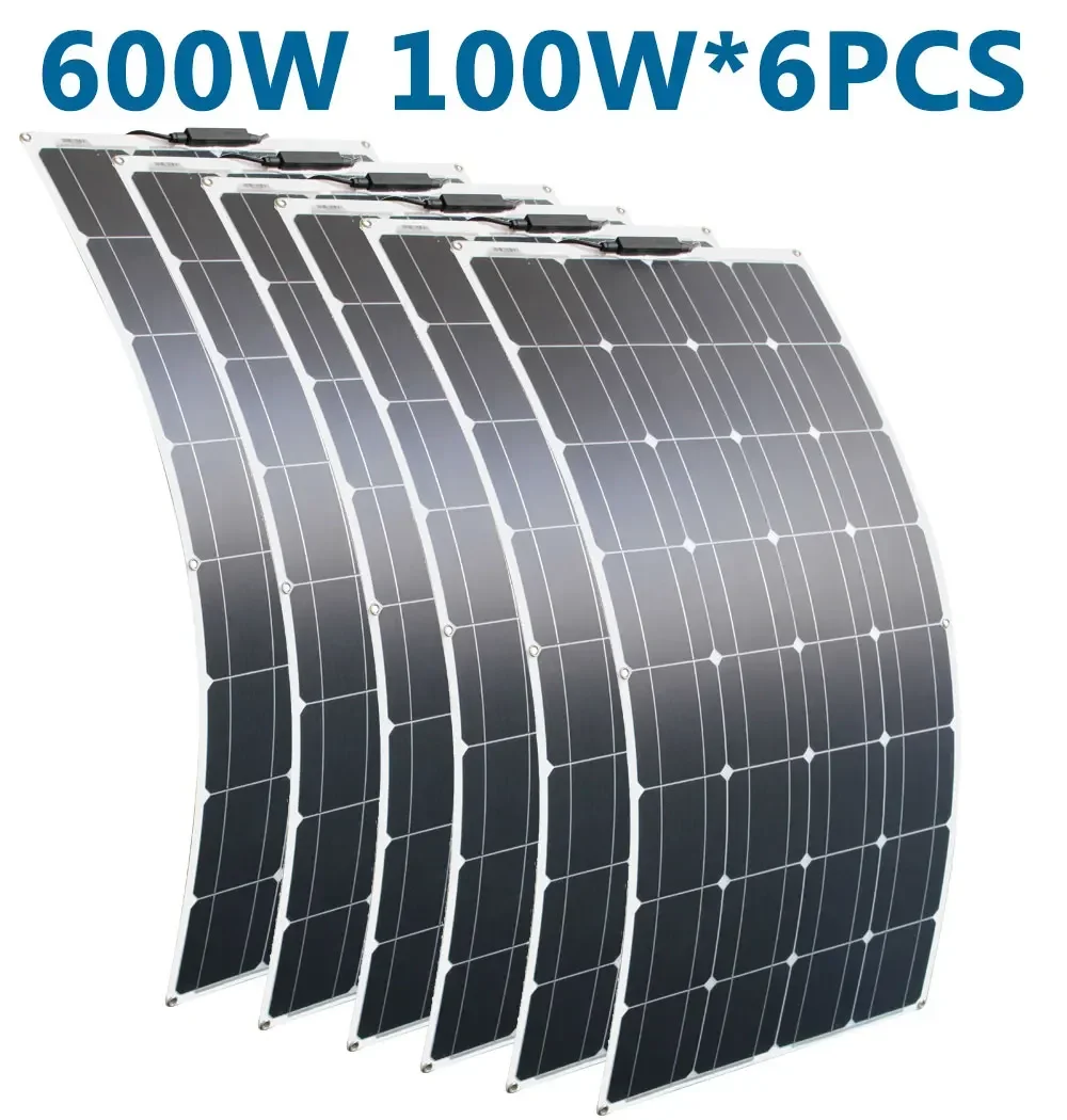 Campervan Solar Panel 100w for Roof Shed Photovoltaic Solar Cell 600w 500w 400w 300w 200w Flexible 12v Solar Panel To Charge Battery