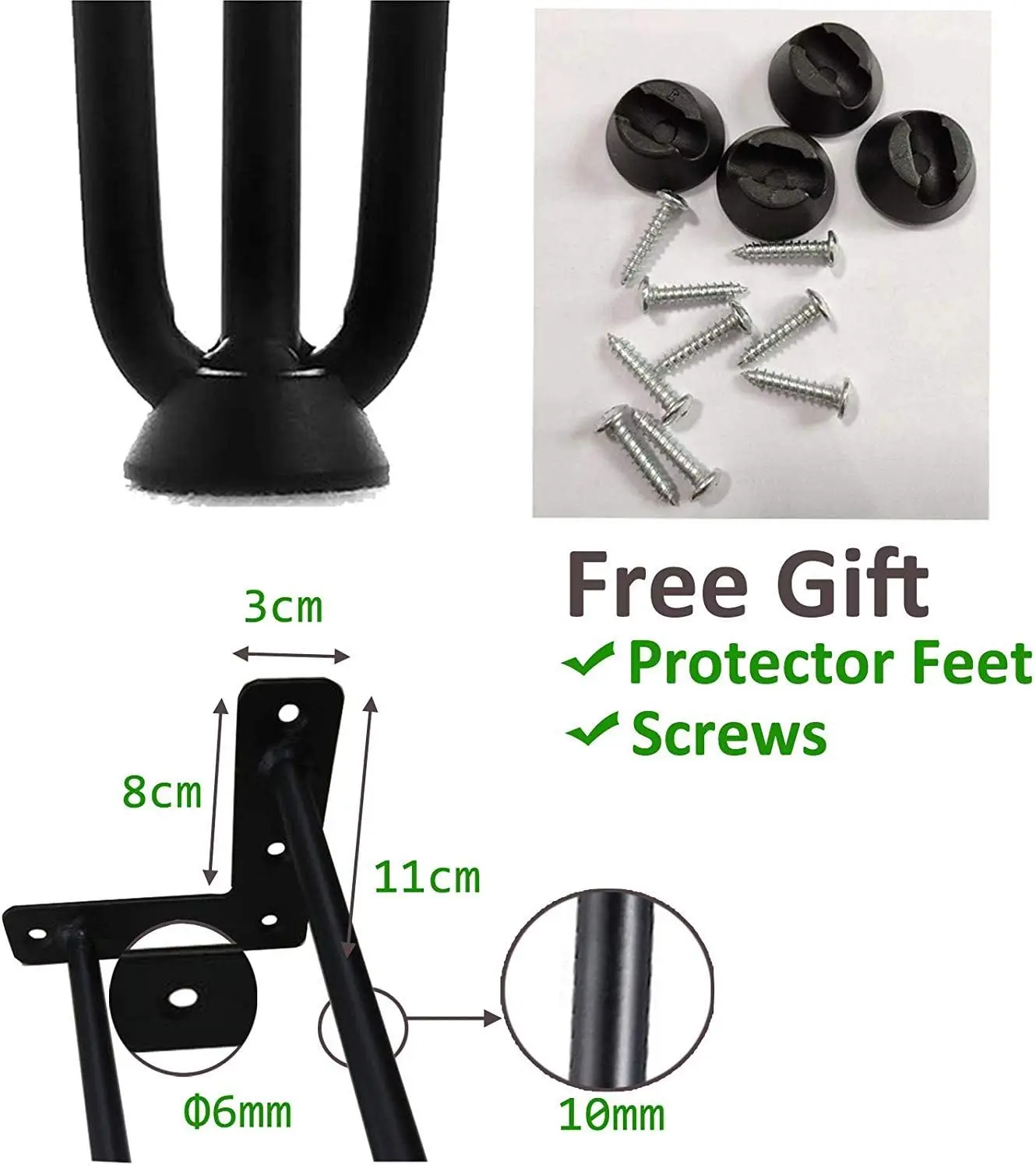 【Beautiful and Durable】The black legs are simply stunning, they have been powder coated with 5 layers of jet black paint giving them extra durability. Our Hairpin Table Legs are made of high quality steel wire, stable, sturdy and durable. Metal material makes it retro. Each set include 4 pieces of table legs.