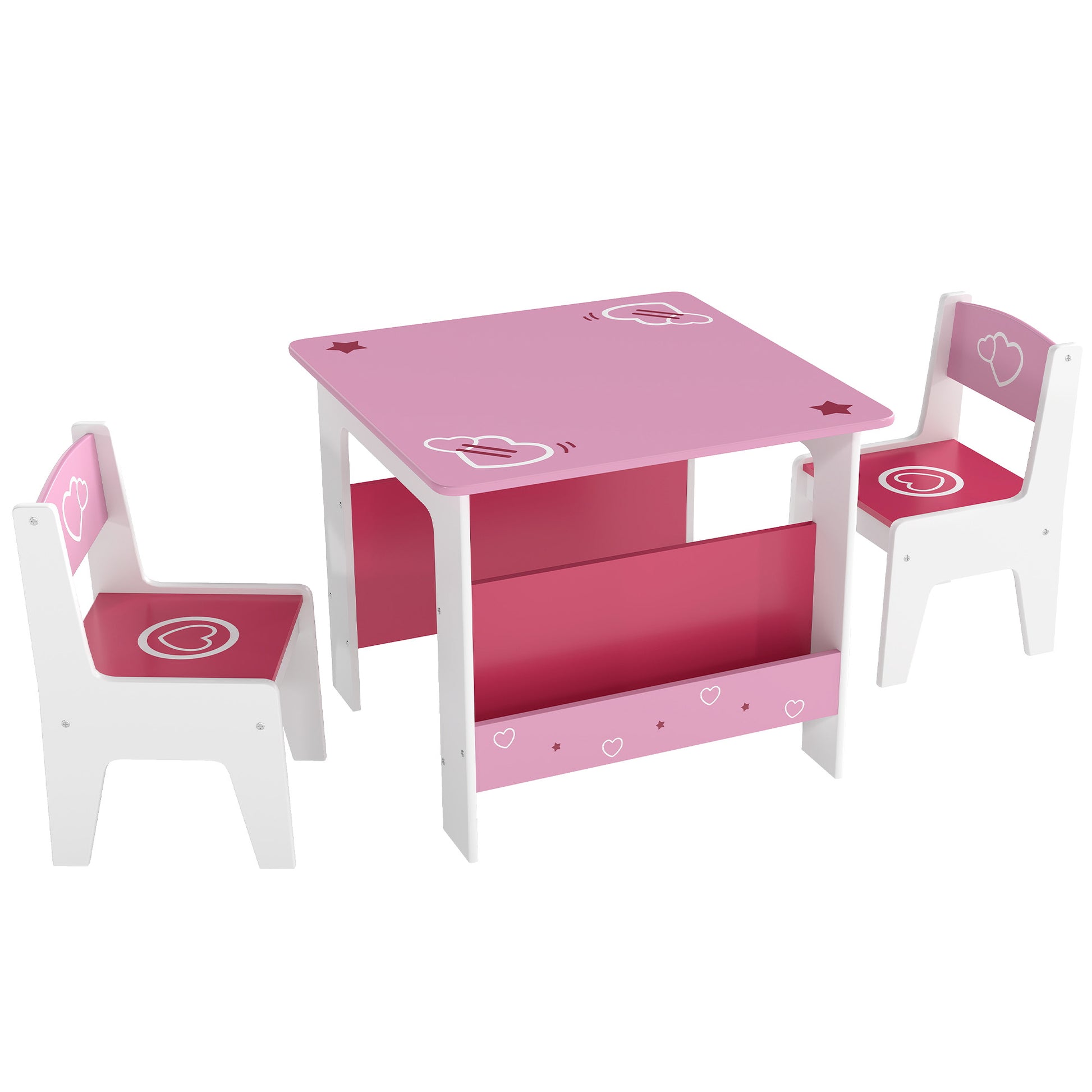 AIYAPLAY 3 Pieces Kids Table and Chair Set, Toddler Activity Table with Bookshelves, for Living Room, Nursery, Playroom, Pink