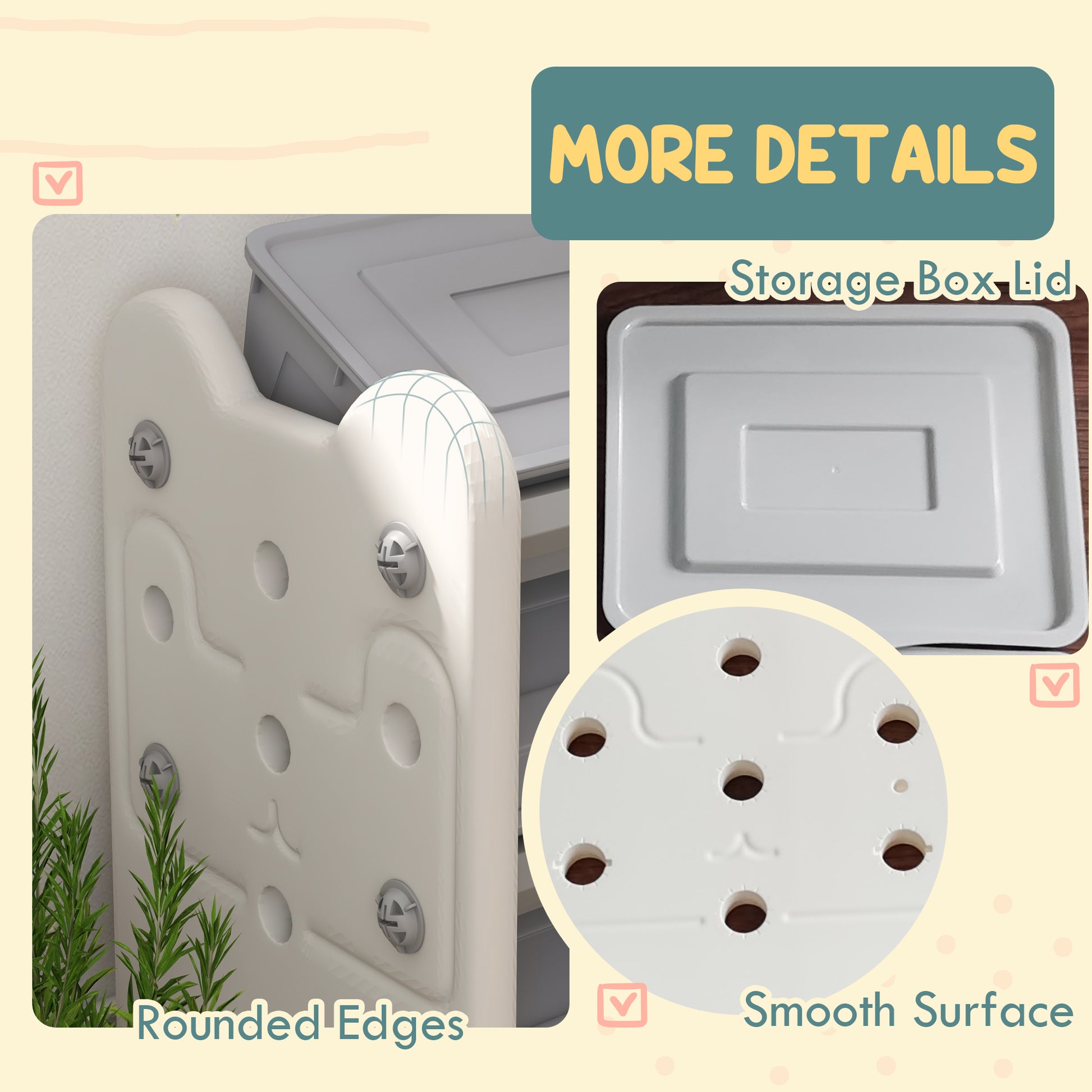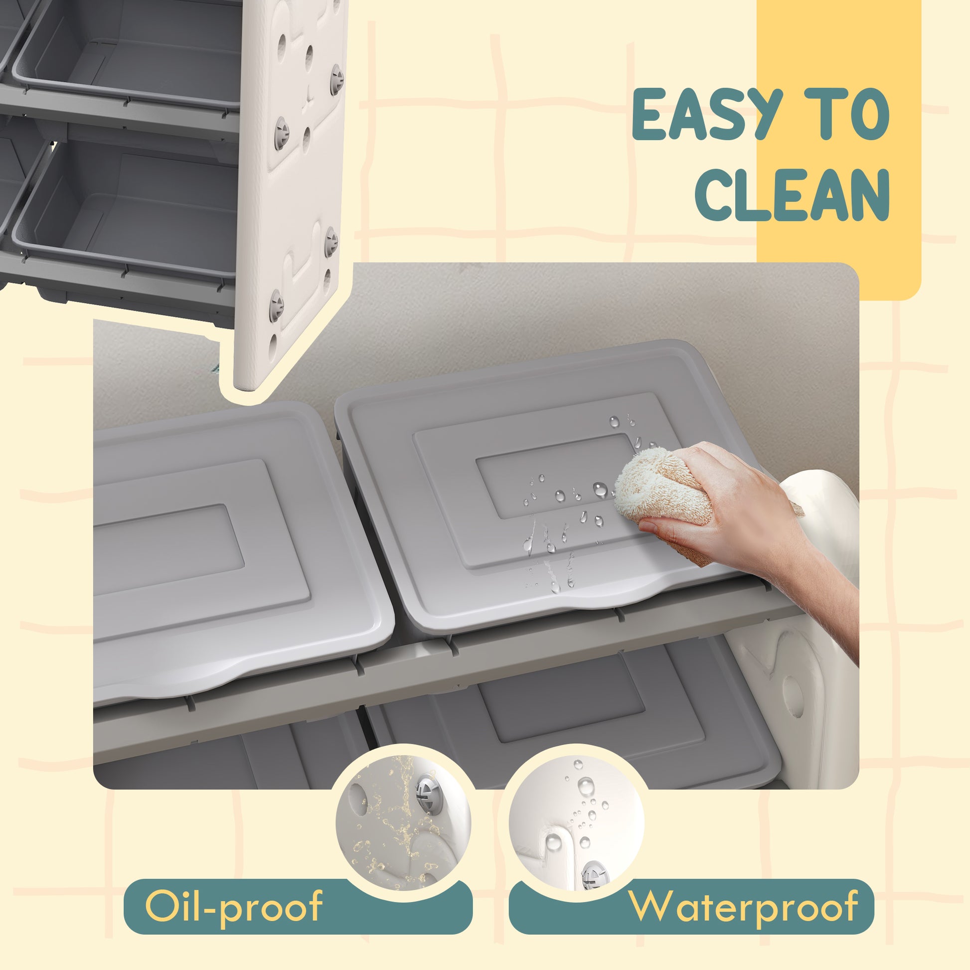 Discover the joy of tidy toys with AIYAPLAY kids storage units! Boasting a 3-tier structure with six spacious boxes, this toy storage unit is your little kid's great mate for keeping their treasures organised. Its lightweight design moves effortlessly between rooms, while the oil and water-resistant surface wipes clean in a jiffy, making it a practical choice for any play area.
