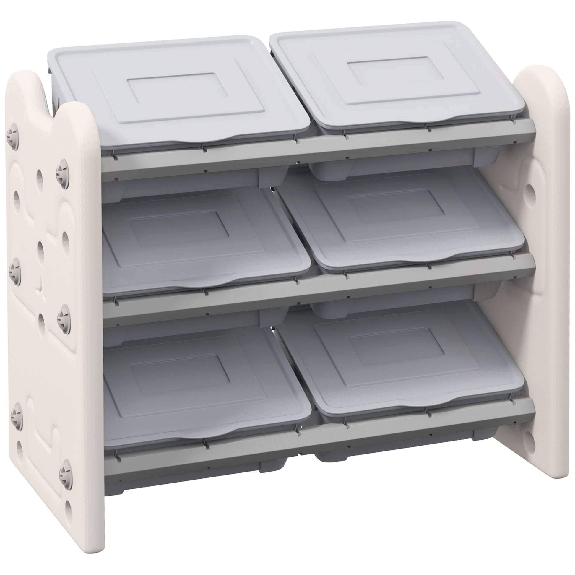 AIYAPLAY 3 Tier Kids Toy Storage Units with 6 Storage Boxes, 76 x 37 x 60cm, Grey