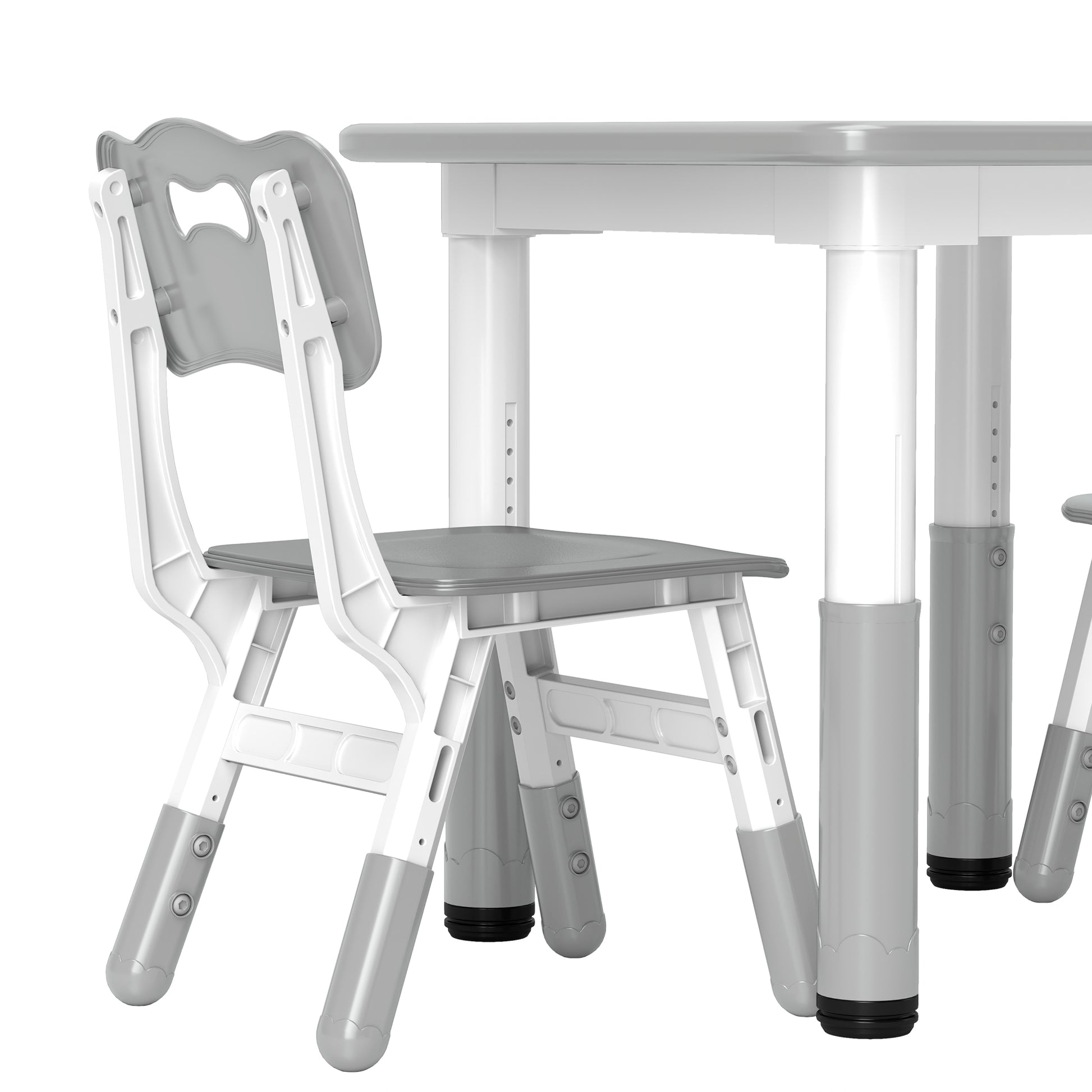 AIYAPLAY Height Adjustable Toddler Table and Chair Set, 3 Pcs Children Activity Table w/ 2 Chairs, for Playroom, Bedroom - Grey / Pink