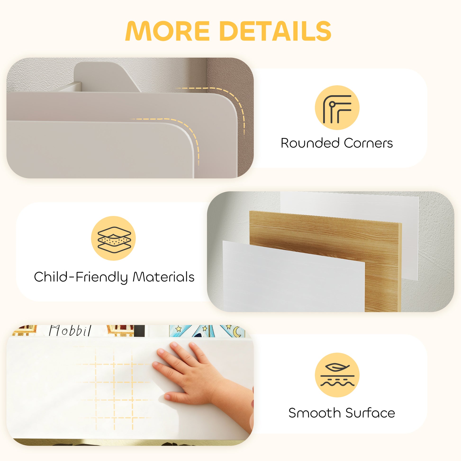 - Forward-facing bookshelves display covers to spark your child's interest in reading