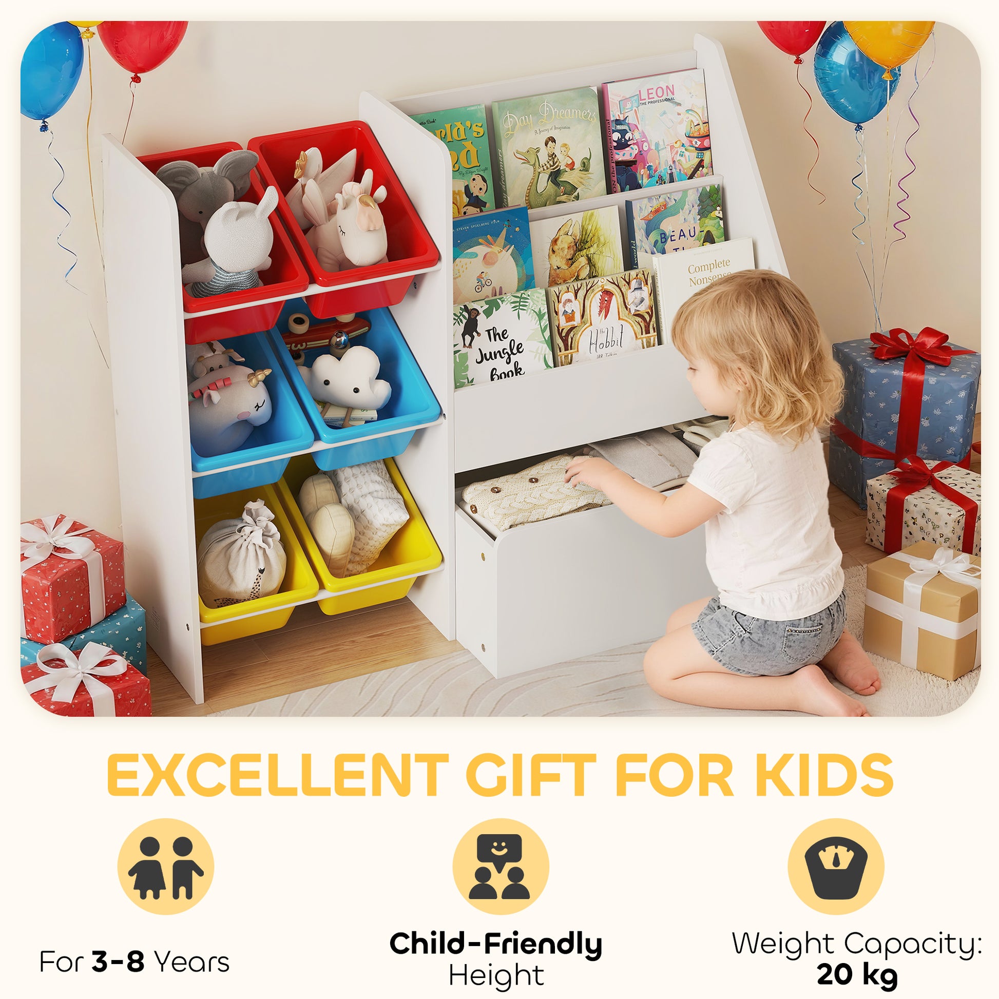 AIYAPLAY Toy Storage Unit, 3-Tier Toy Organiser Shelf with 6 Removable Storage Bins for Bedroom, Nursery, Multicolour