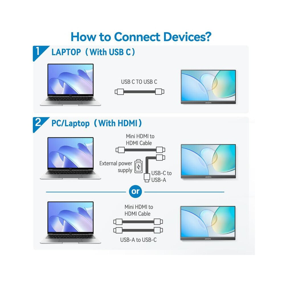 USB Type-C ports,easy to connect to your devices with 1 cable, No drivers are needed. It can easily copy the mobile phone screen to widen your view. It can be used for driving navigation,movie projection, and the second screen of the game.