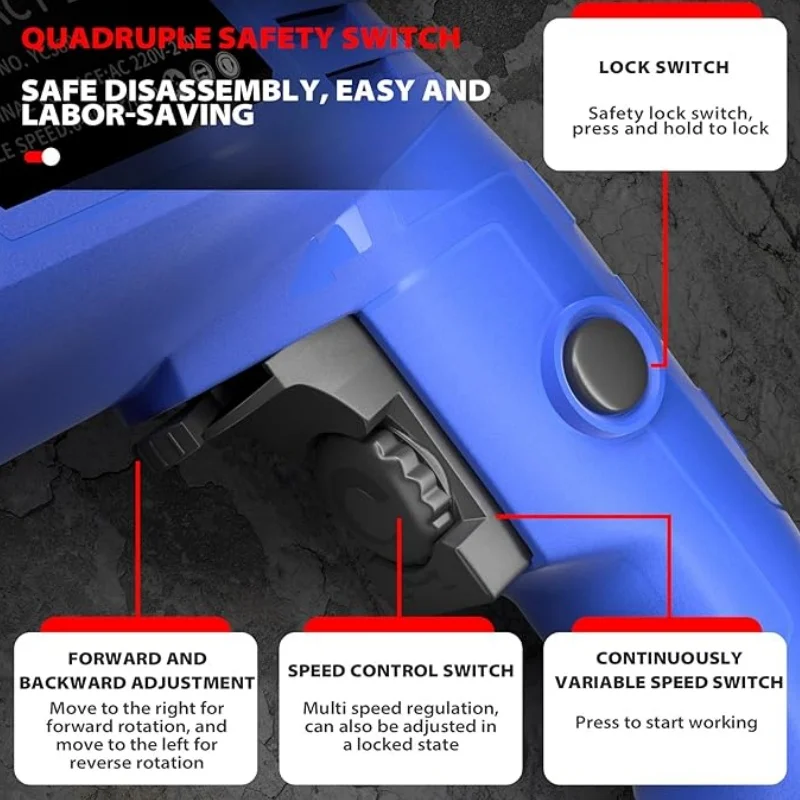 - Rotatable auxiliary handle + non-slip soft rubber grip