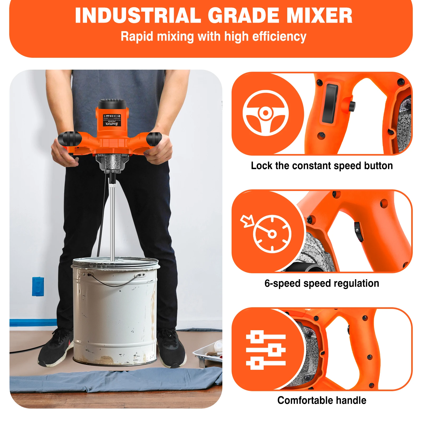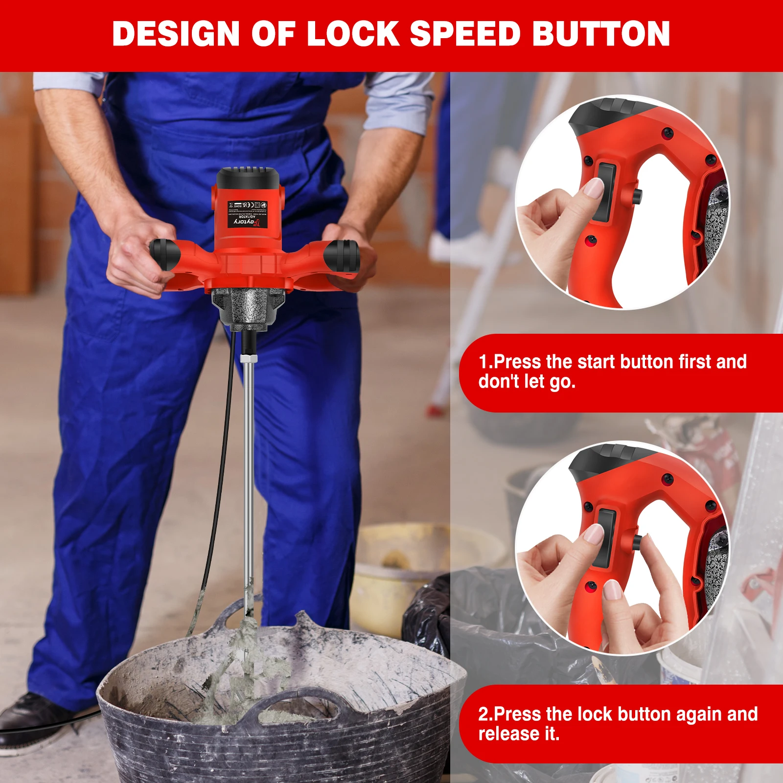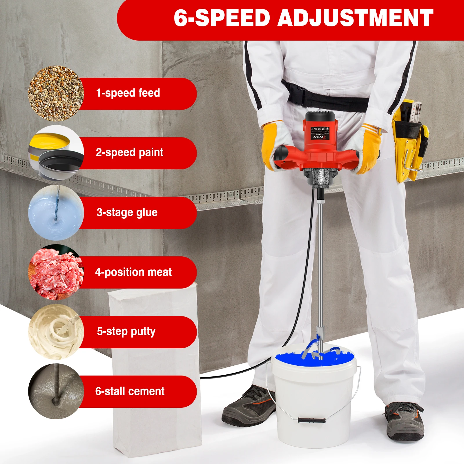 DayPlus 2600W Handheld Concrete Mixer Machine Paddle Mixer Adjustable 6 Speed Stirrer Electric Mix Stirring Tool M14 Mixing Rod