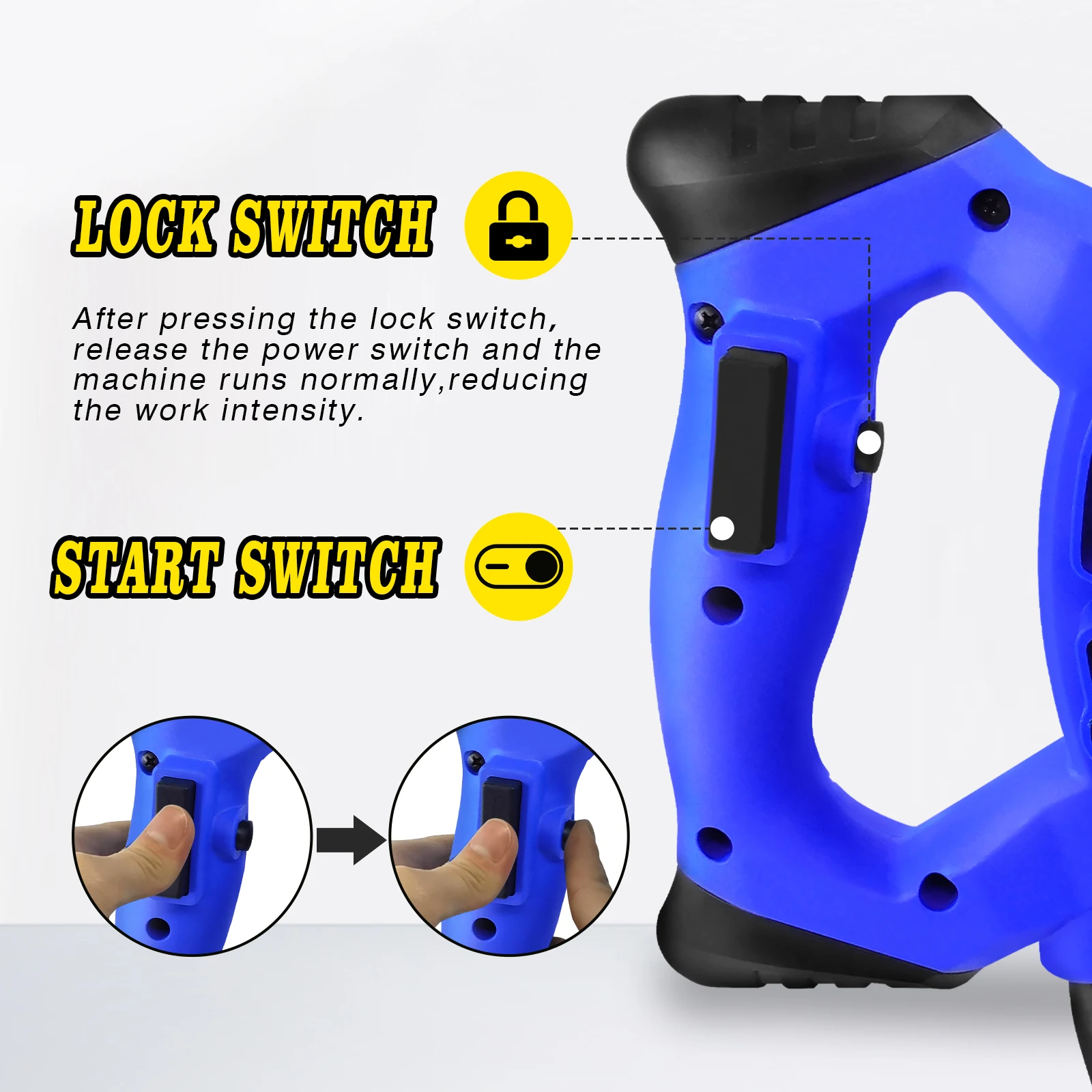 Comes with 6 different speeds, you can save a lot of time and labor to finish your task. You can also adjust the speed according to your expectations. Comes with steering wheel handle design for comfortable grip and better vibration reduction.