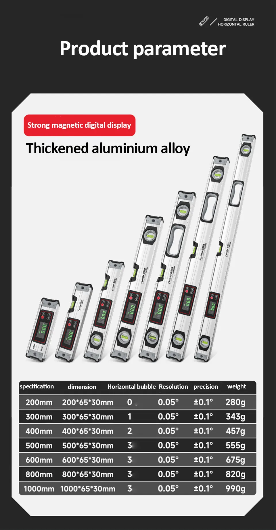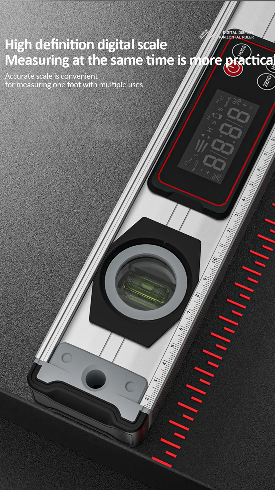 Digital Protractor Angle Finder Inclinometer Magnets Spirit Level Angle Slope 0-90 °Electronic Level Ruler 20-50MM with LED Display 40CM