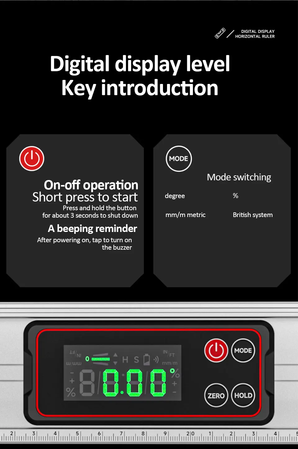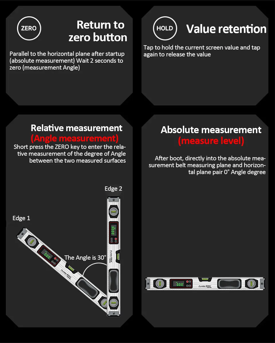 2. Accurate horizontal measurement: Accurate horizontal measurement at angles of 0 ° -90 °, with an accuracy of 0.05 °.