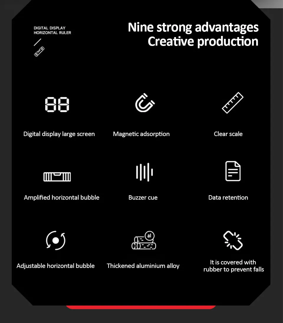 3.360 ° adjustable horizontal bubble: sensitive and accurate measurement, effectively protecting the horizontal bubble and extending its service life.