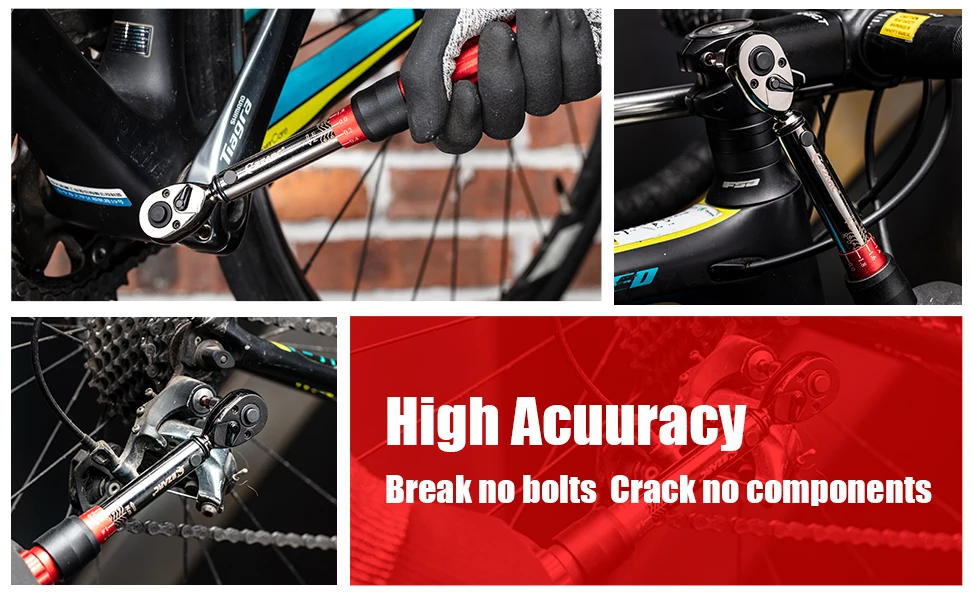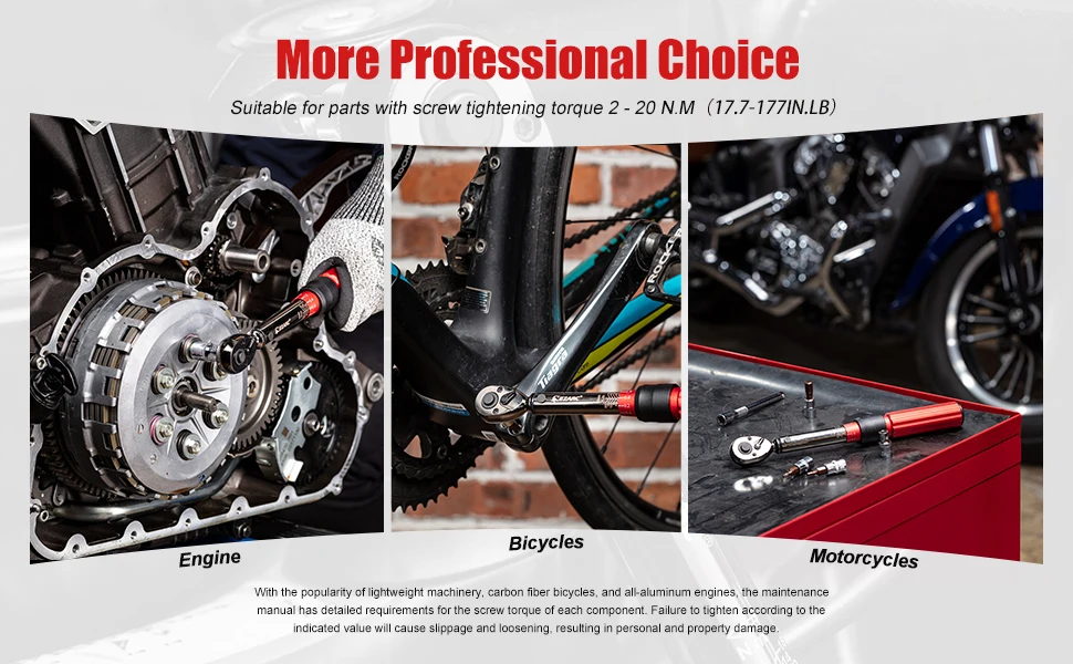 【Protect Your Bike】 Our 1/4-inch dual-direction torque wrench driver removes the guesswork, making it easy to follow the manufacturer’s recommended settings. The wrench will emit a “click” that can both be heard and felt when reach pre-set torque value . it is alerting you won’t put too much force on the torque wrench and helps prolong the life of high-performance components and prevents damage from over tightening.