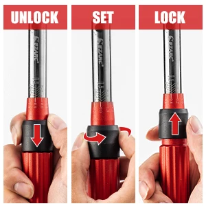 【Easy to Use & Convenient】 Pull down the lock knob and hold it until the torque setting is completed. Release the hand, and the lock knob will automatically rebound back to lock the value. Featuring laser scale markings on the novelty gloss Electro-Black background, Easily catching the eye even in low light conditions. Dual range scale is clear and easy to read, not easy to wear.