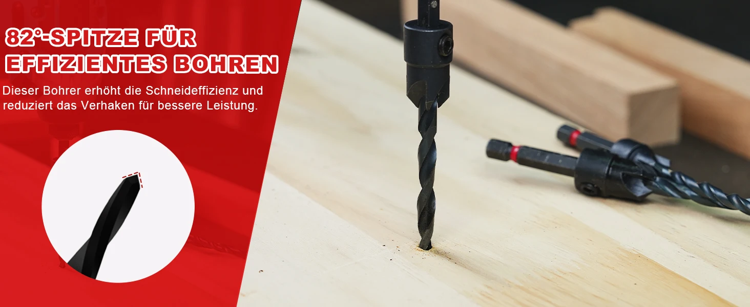 Efficient Drilling, Flawless Finish - Our drill bit's sharp cutters and 82-degree counterbore angle ensure smooth, rapid drilling in hard and soft woods. Tapered pilot bits deliver fast, clean pilot holes for a snug screw fit. All-in-one drilling, countersinking, and counterboring maximise efficiency.