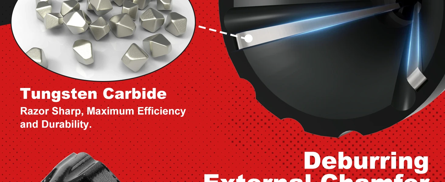 【YG8 Carbide Teeth】EZARC deburring external chamfer tool is equipped with three YG8 carbide blades, offering greater cutting efficiency and durability than standard high-speed steel tools on the market. Its black oxide exterior coating ensures heat resistance and corrosion protection.