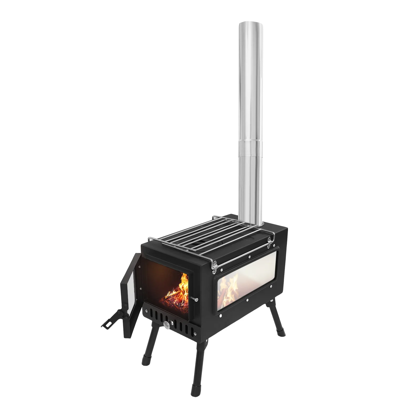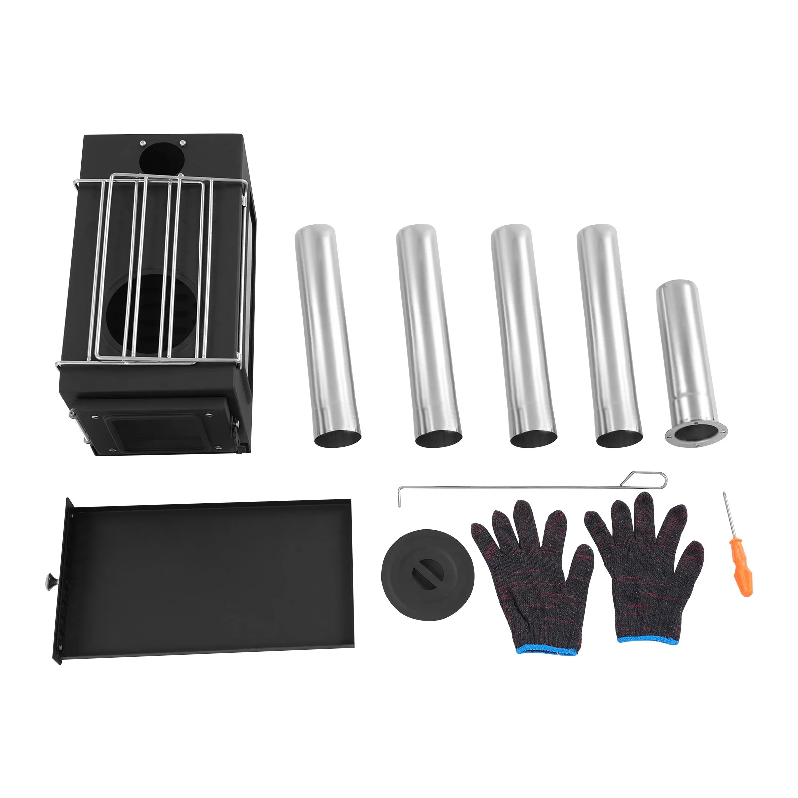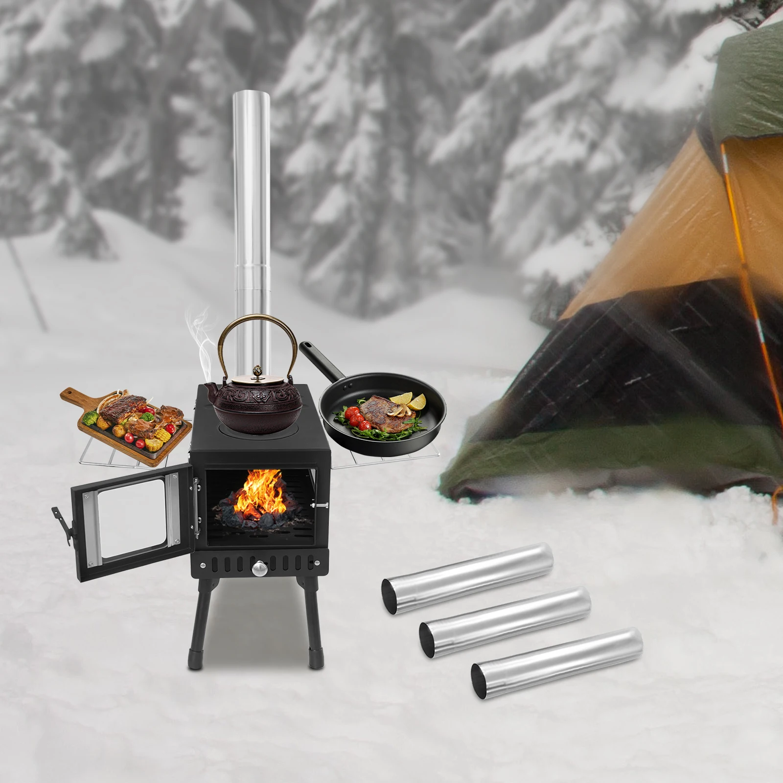 Foldable Camping Tent Stove With Chimney Carbon Steel Wood-Burning Heater For Cooking & Heating Outdoor Camping Tools