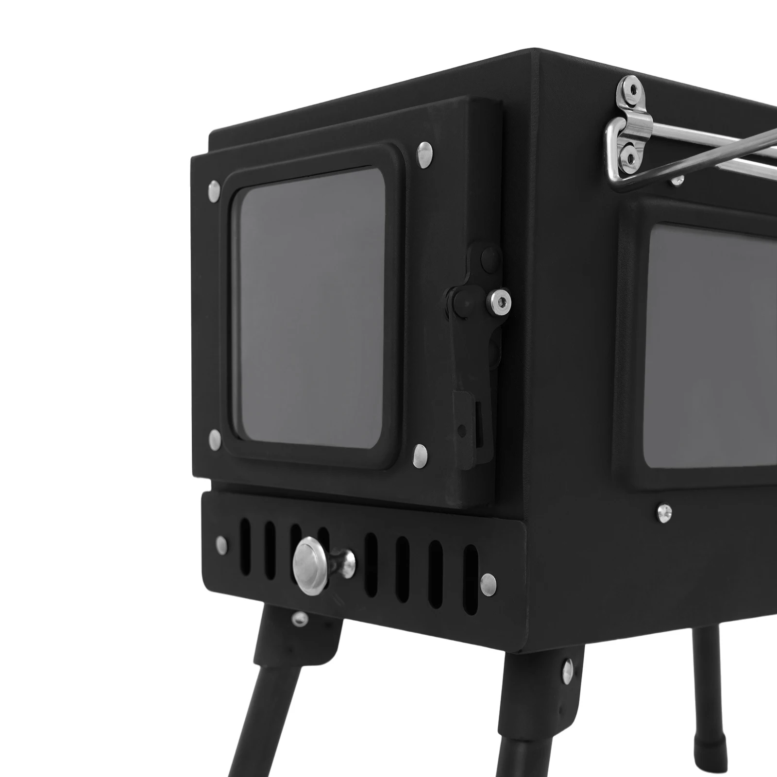 Thoughtful Design: The front door and side window have heat-resistant see-through glass, enabling you to observe the wood burning status in the stove so that you can add fuel in time to ensure optimal combustion throughout the cooking or heating process.
