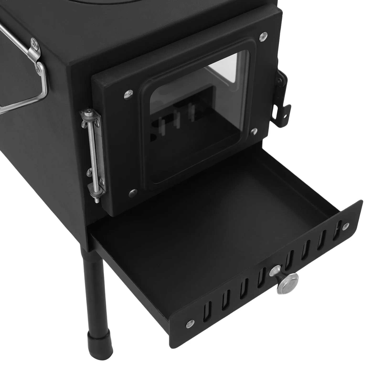 Removable Ash Collection Tray: It allows you to quickly and easily dispose of ash build-up, keeping the inside of the stove clean.