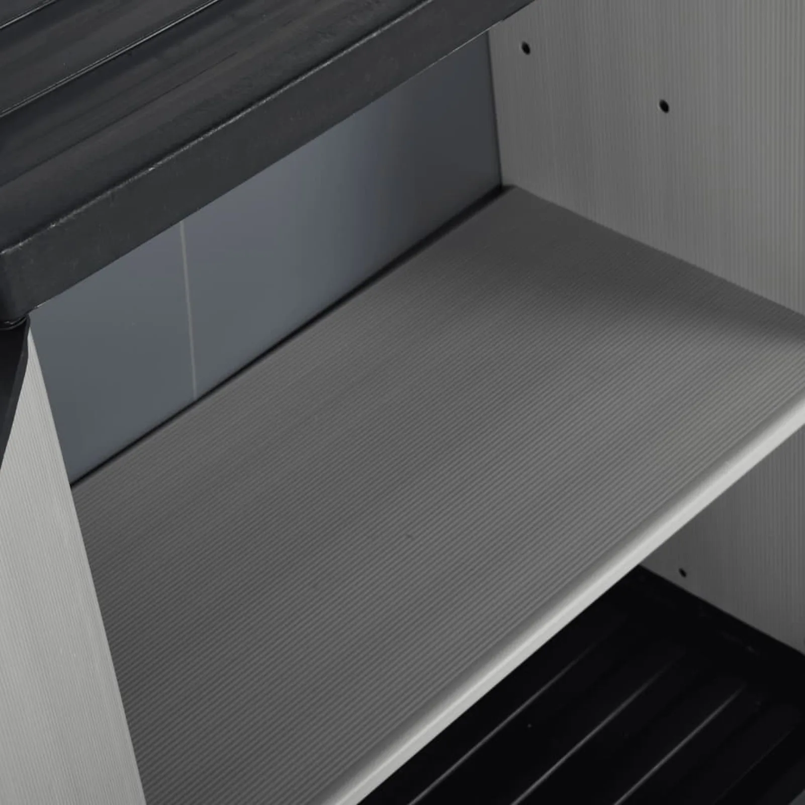 This garden storage cabinet blends into any decor with its timeless design. It is ideal for using in the garden or on the patio, etc. This outdoor cabinet is made of PVC and PP (Polypropylene), making it sturdy, durable and easy to clean. The plastic cabinet offers ample storage space to keep your essential items organised and within reach. The garden cabinet can be locked with a padlock for added safety (the lock is not included). Meanwhile, the tool cabinet has a compact design and makes the most use of limited space.
