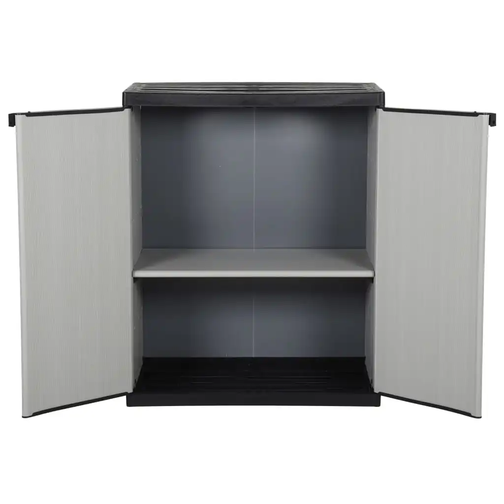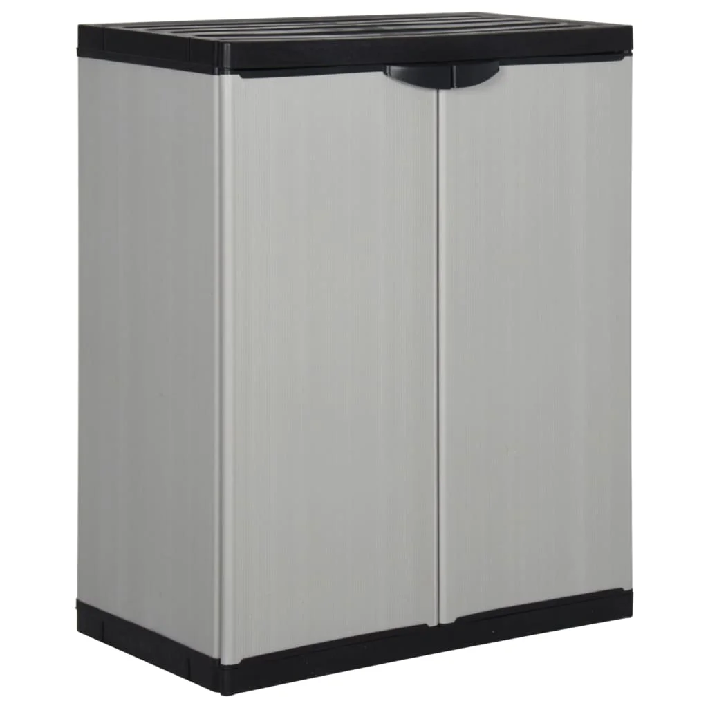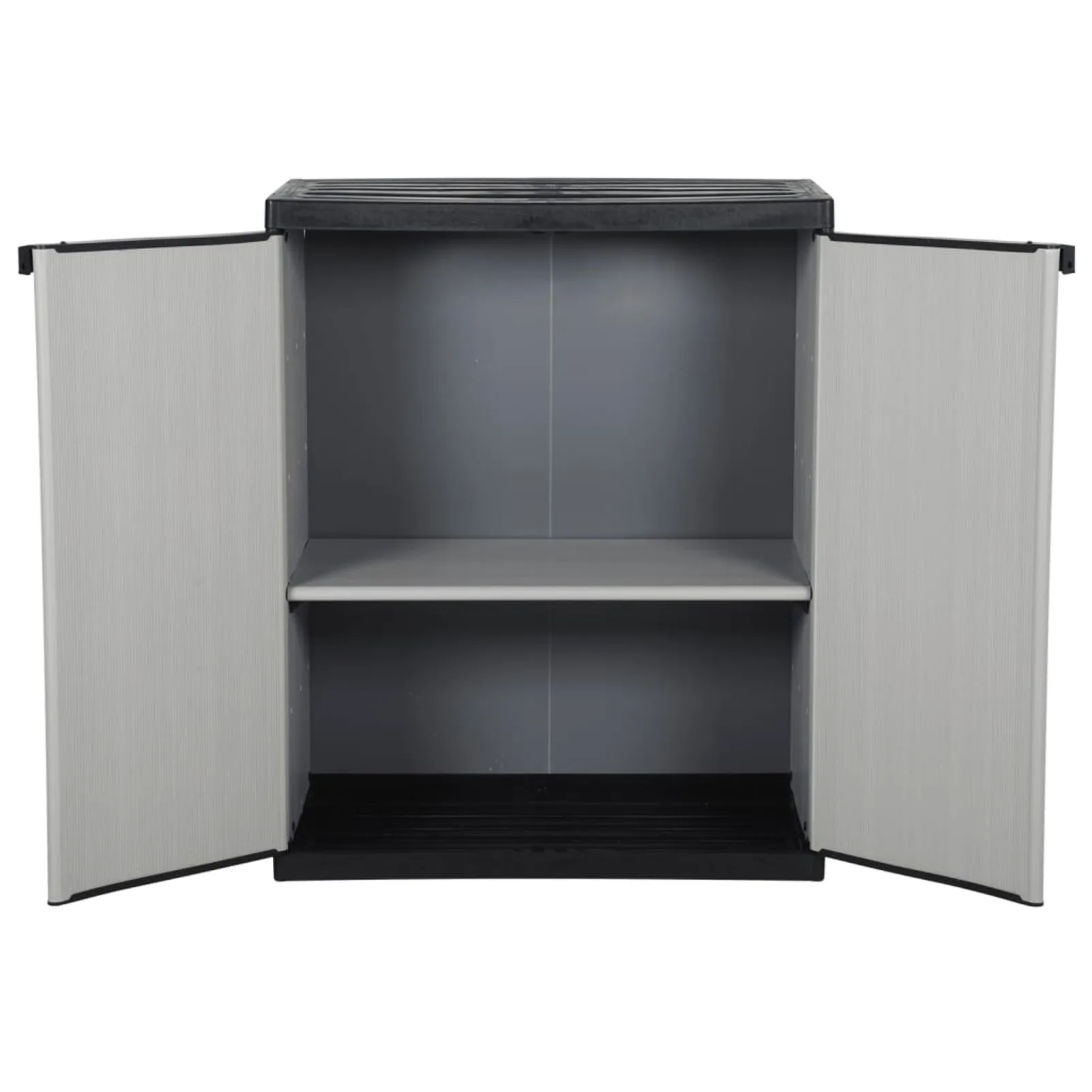 Outdoor Stylish Grey & Black Garden Storage Cabinet Box With 1 Shelf - 68x40x85 cm Outdoor Organiser