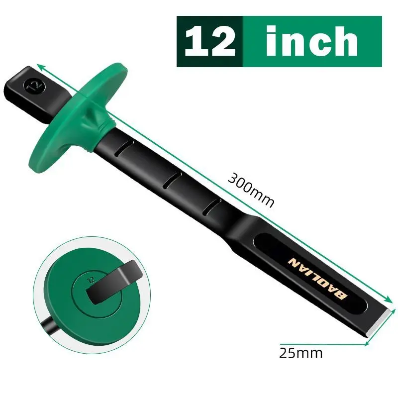 Heavy-Duty Flat Chisel with Hand Guard 6/8/10/12 Inch Stone Concrete Splitter Stonemason's Carving Knife Woodworking Tools