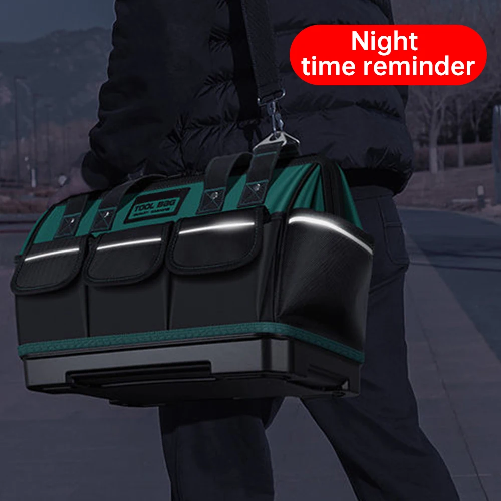 Crafted from high-density 1680 double-layer Oxford cloth, this heavy-duty tool bag offers exceptional durability with wear, scratch, and tear resistance. Its waterproof coating protects your tools from moisture, ensuring long-lasting use. Measuring 37 x 25 x 10 cm, it features a spacious, three-dimensional layout for efficient organization and increased capacity. Equipped with a night reflective warning strip, it enhances your safety by reflecting light in low-visibility conditions. Ideal for professionals needing reliable, secure storage for hardware and tools on the go.