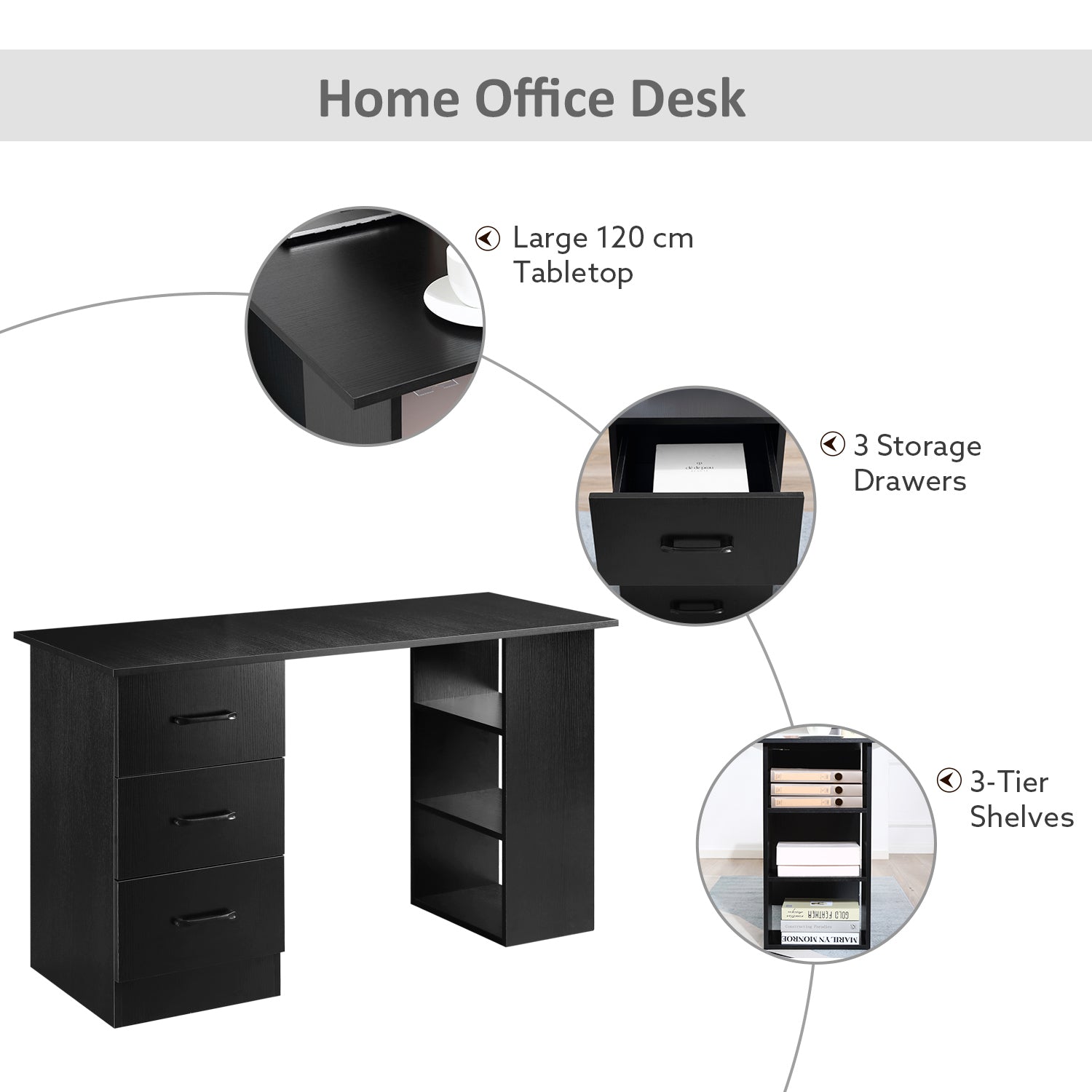 Computer Desk with Storage Shelves Drawers, 120cm Writing Table Study Workstation for Home Office, Black