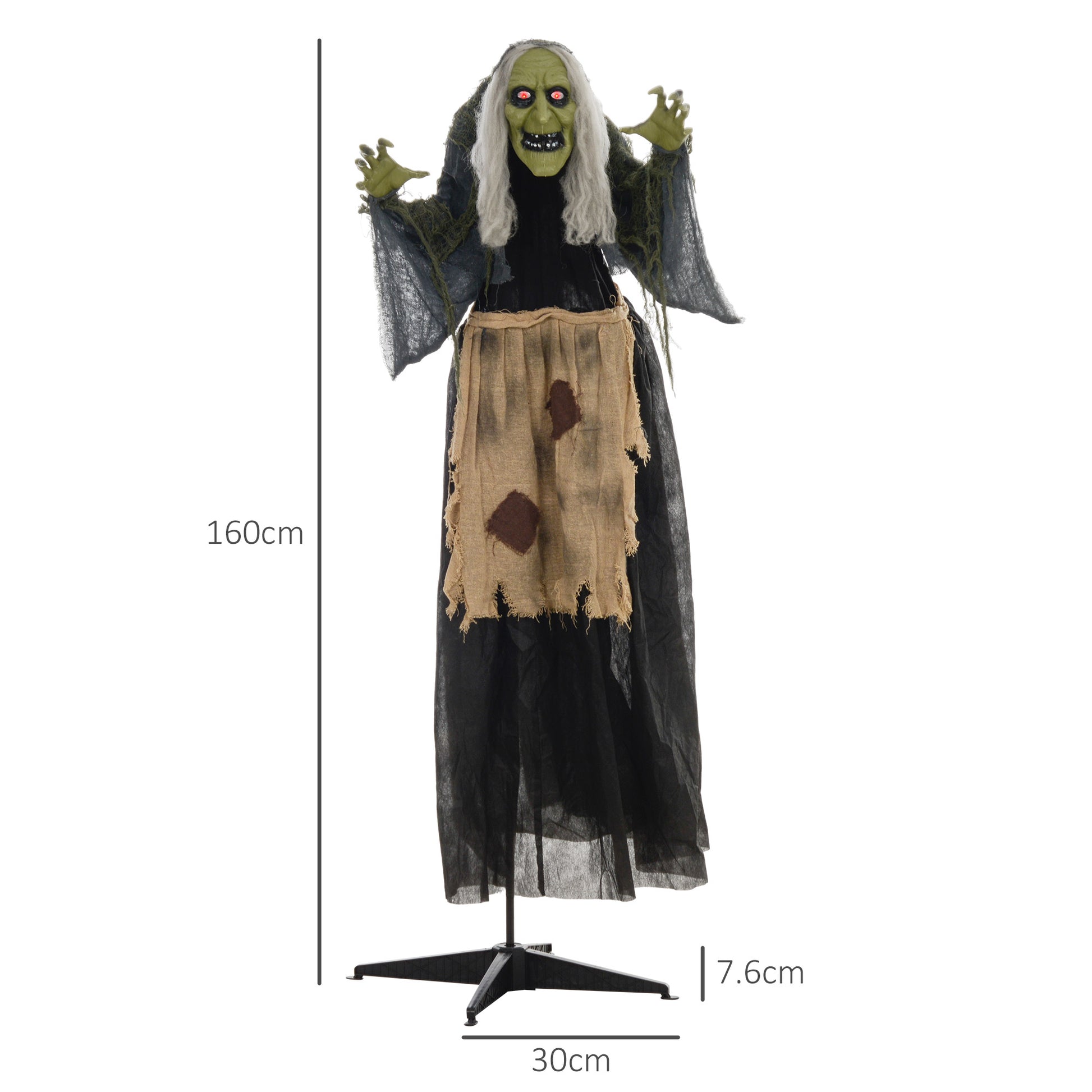 Unleash spine-chilling thrills with the HOMCOM Animated Halloween Prop, featuring a sinister witch whose arms contort as you desire. Triggered by touch or piercing screams, this fiendish figure waves its hands, boasts eerie red glowing eyes, and howls menacingly, making it a standout Halloween outdoor decoration for any haunted house or outdoor Halloween decor.