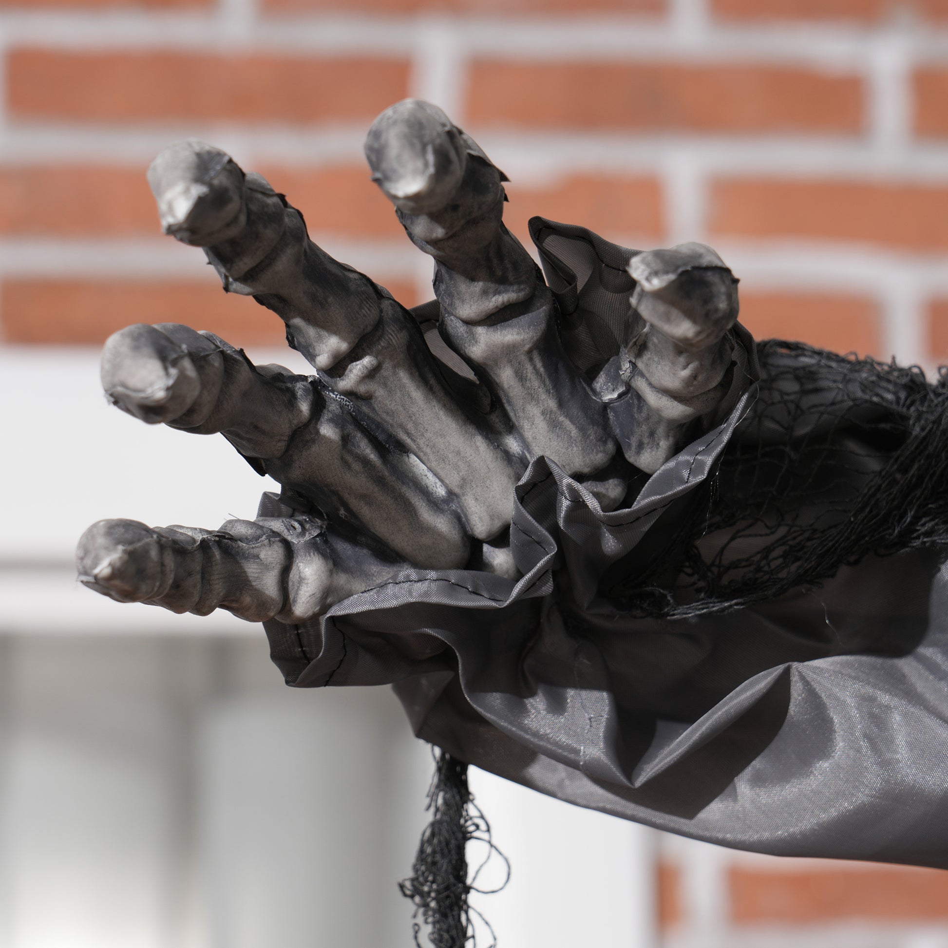 Unleash spine-chilling thrills with the HOMCOM Animated Halloween Prop, featuring a skeleton werewolf whose arms contort as you desire. Triggered by touch or piercing screams, this fiendish figure twists its hands, boasts eerie green glowing eyes and creepy howling, making it a standout Halloween outdoor decoration for any haunted house or outdoor Halloween decor.