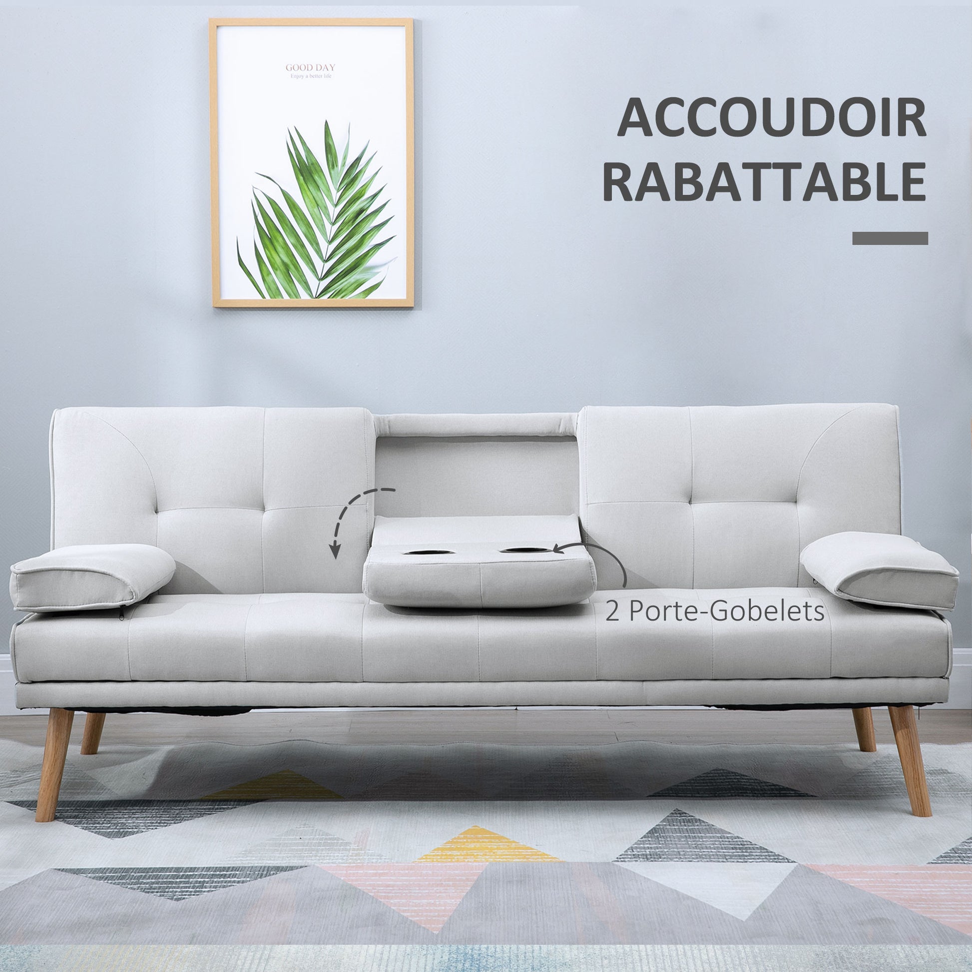 A modern must for the home, which is ideal for when you want to save space - welcome this HOMCOM three-seater sofa bed into your home. A metal frame and wooden legs mean a strong and supportive core, with thick padding for comfort; the linen upholstery is smooth. Set the back to a 115°, 145° or 180° angle - whatever is most comfortable for you. The click clack back makes it super easy to transform - saving you time and effort. Complete with a two-cup middle table.