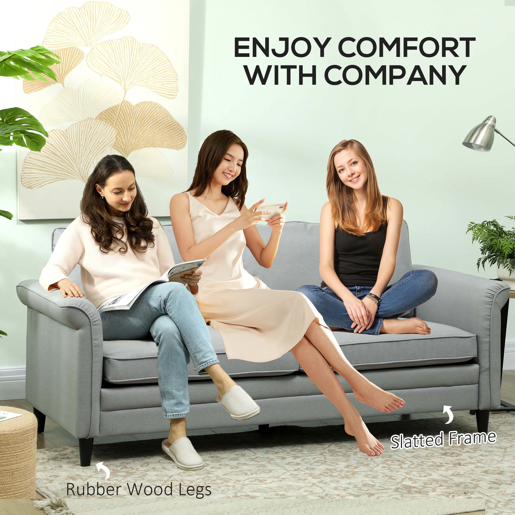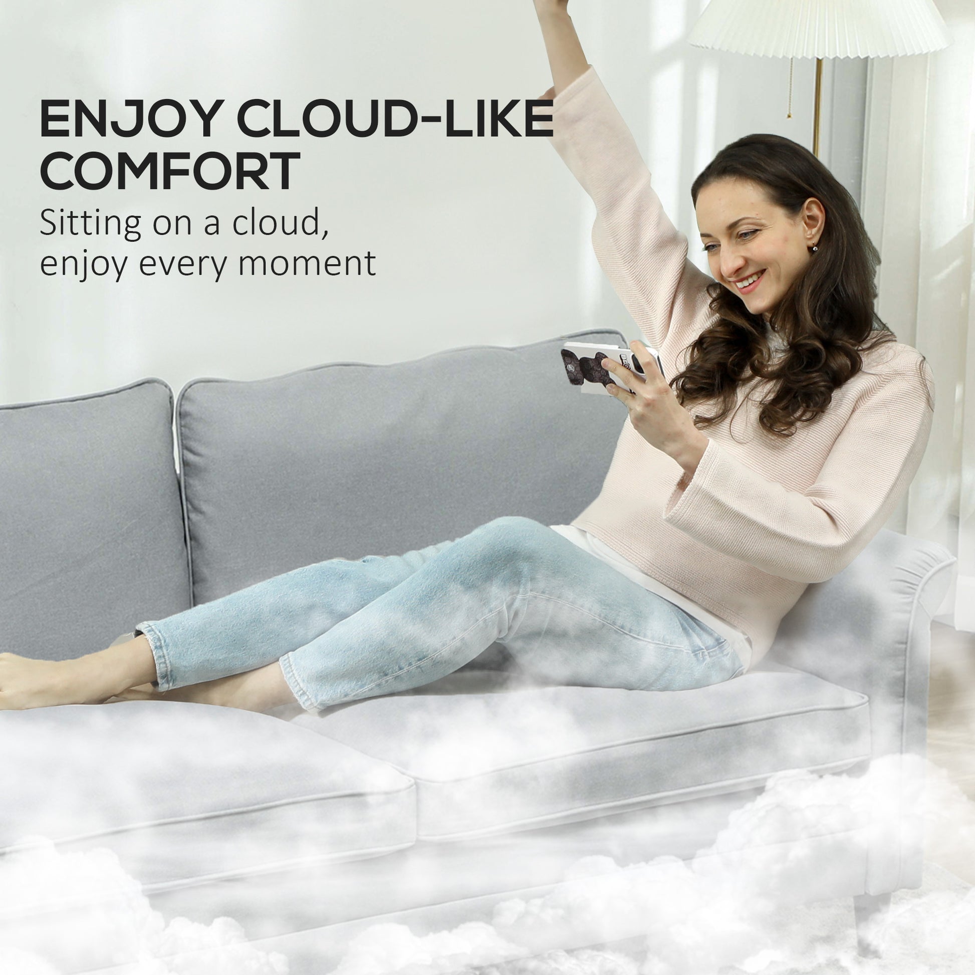 Sink into the sumptuous depths of the HOMCOM Three Seater Sofa, where comfort meets chic modernity. This fabric couch boasts the packet spring design for superb stretchiness and thick, luxurious padding enveloped in a breathable linen-feel fabric. It's not just a seat; it's your new favourite relaxation spot, designed to support any lounging style with its spacious, 50 cm deep seating.