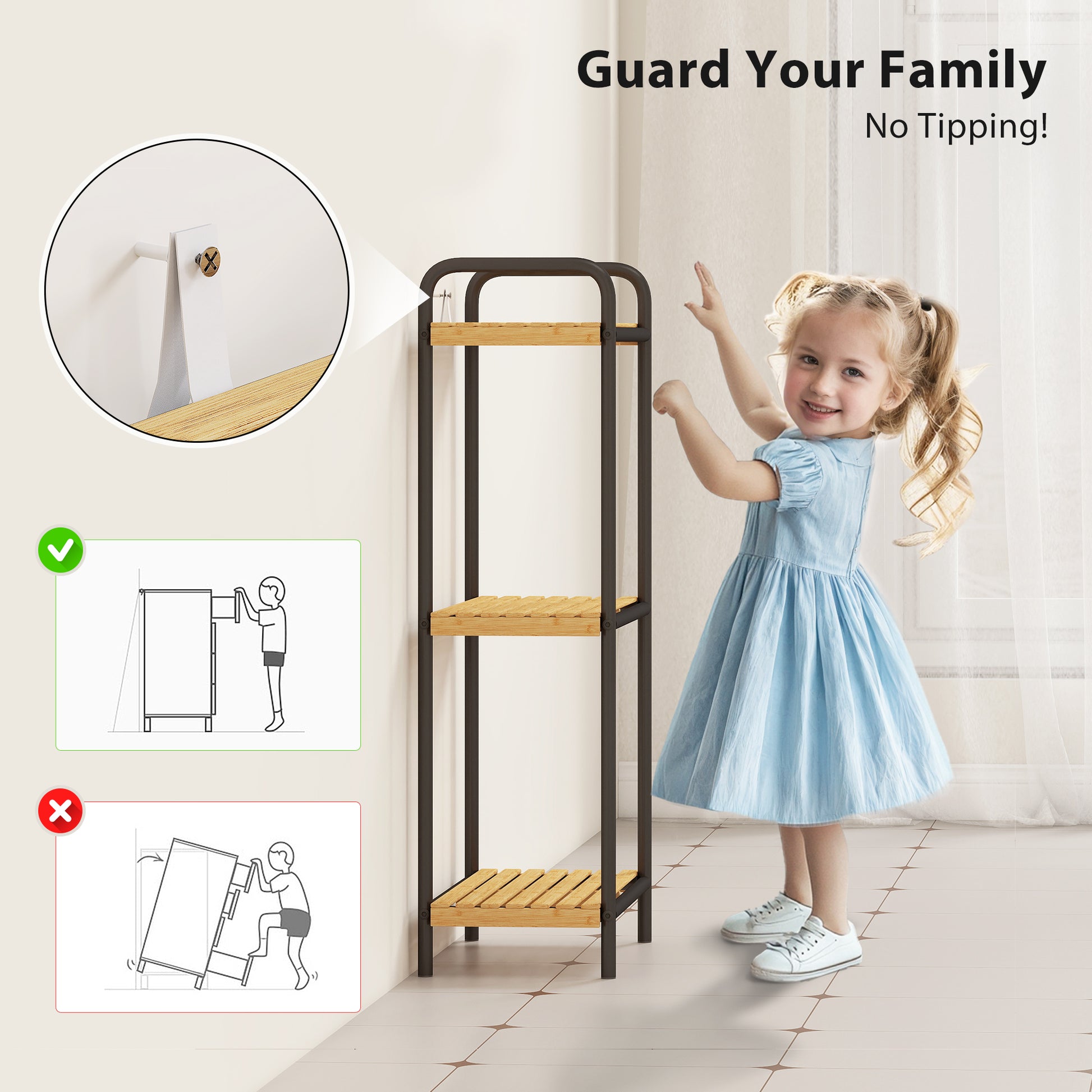 - Anti-tip kit and powder-coated steel frame keep your family safe