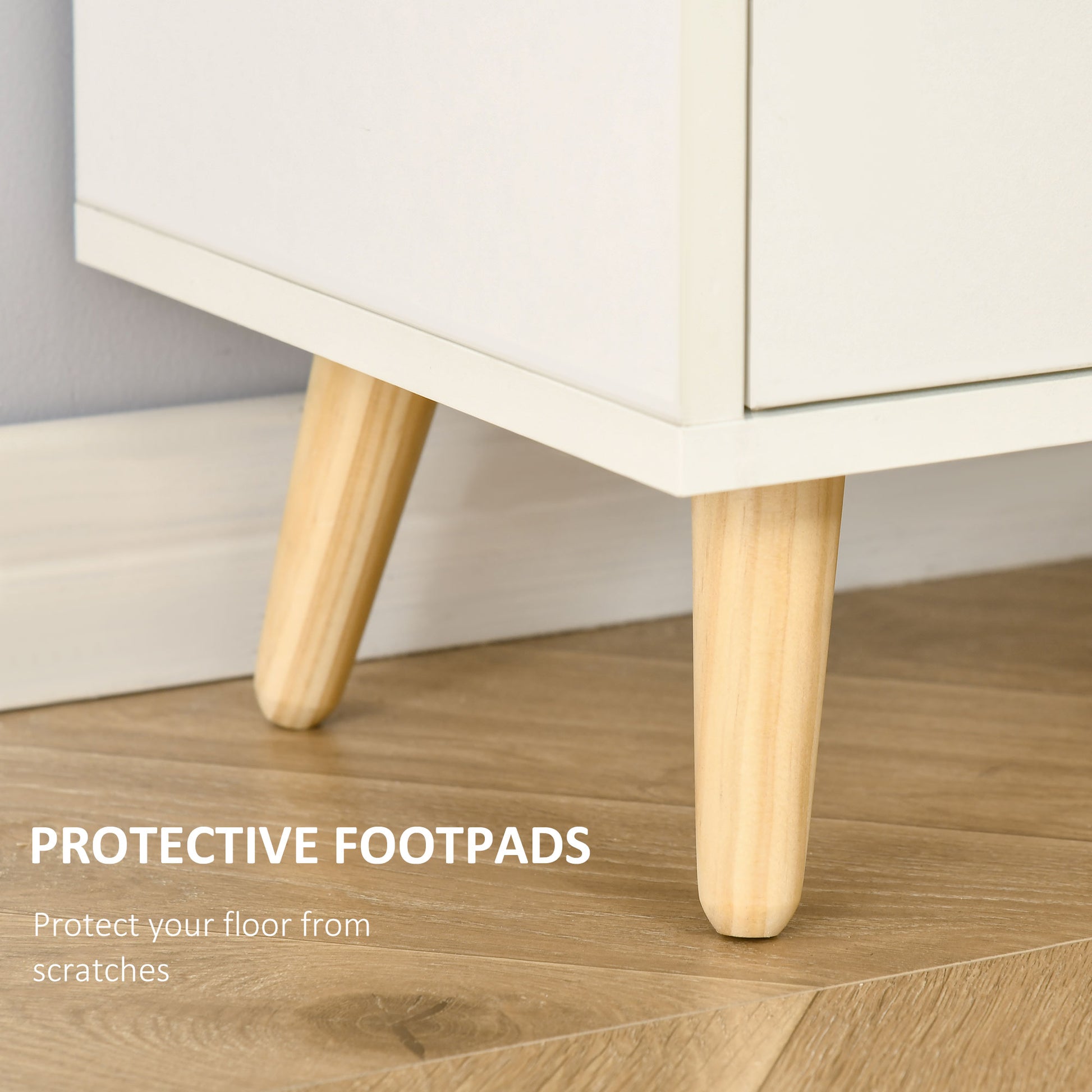 HOMCOM 3 Tier Bookcase with Doors White Wooden Bookshelf Display Cabinet for Home Office Living Room Bedroom Study