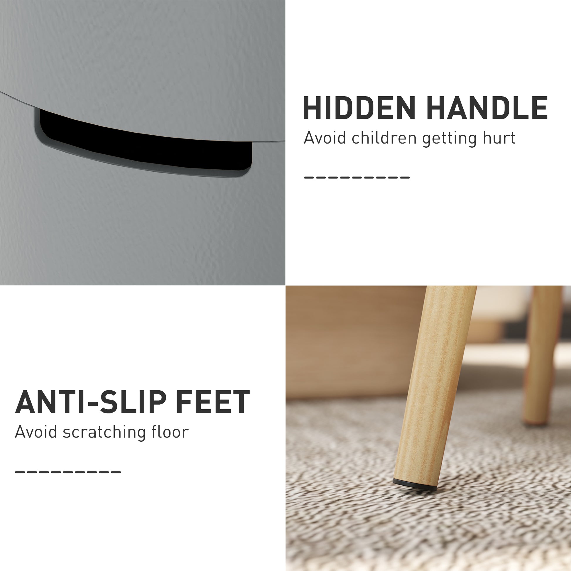 3-Tier Coffee Table, Round End Table with 2 Hidden Compartments and Detachable Tray, with Storage for Living Room, Grey