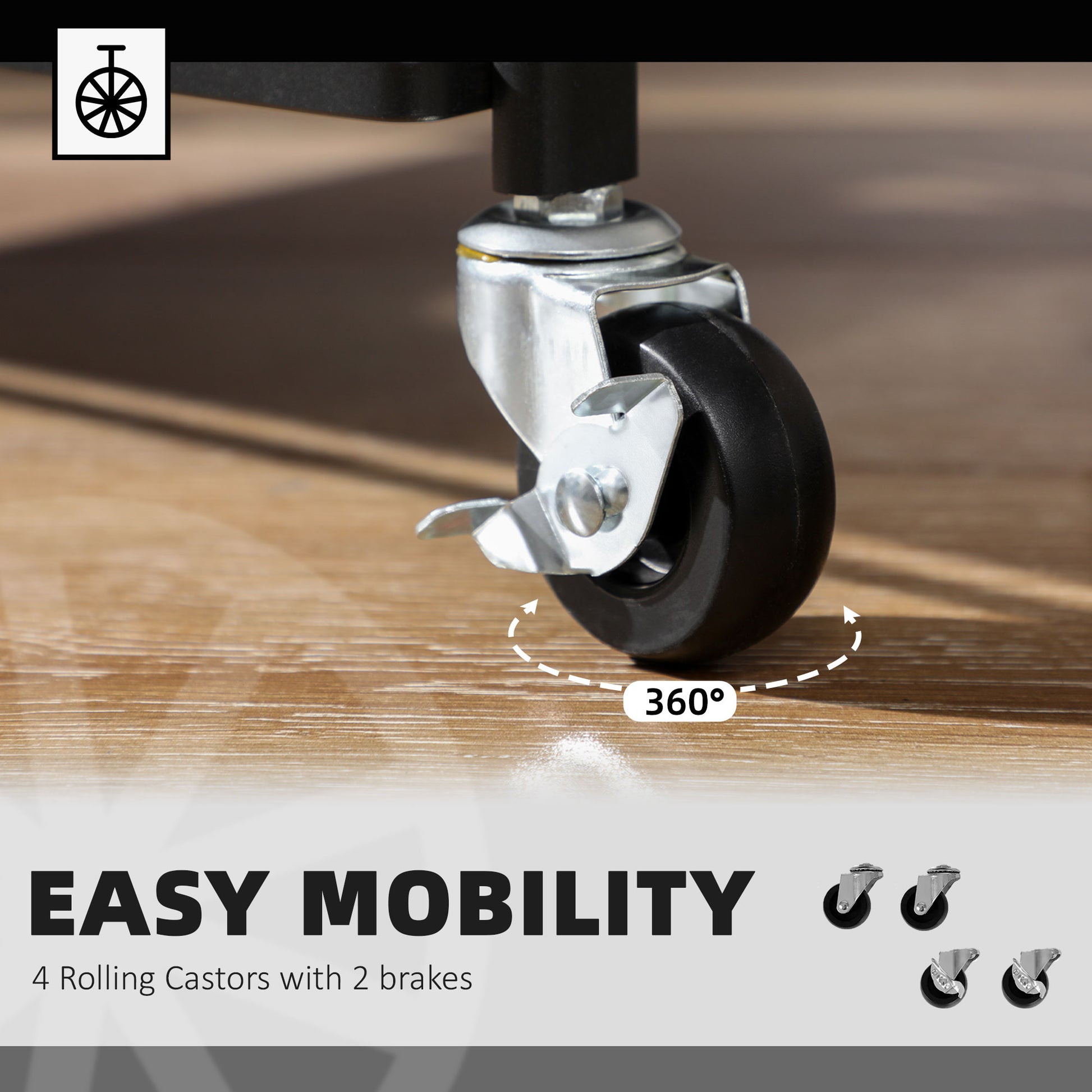 This HOMCOM trolley helps bring extra storage in plenty of different places. Fitted with wheels and with a top handle, it's super easy to move around from room to room - with brakes too to keep standing in place when needed. Made from powder coated steel, it's a strong piece - with three baskets to give you organised storage. A great piece for any home.