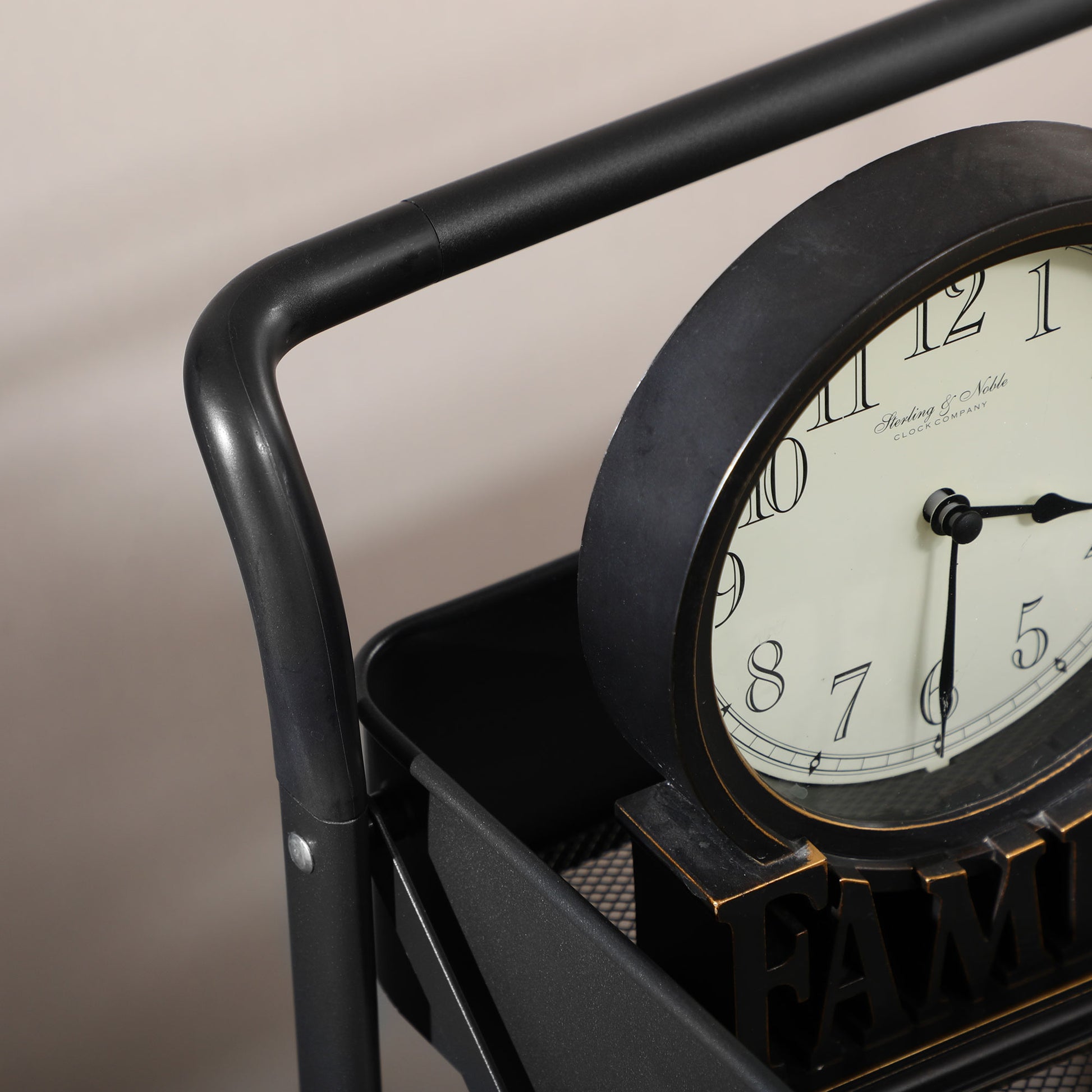 3 Tier Storage Trolley Utility Cart Foldable Rolling With 3 Mesh Baskets, 4 Removable Hooks for Living Room, Laundry and Kitchen, Black
