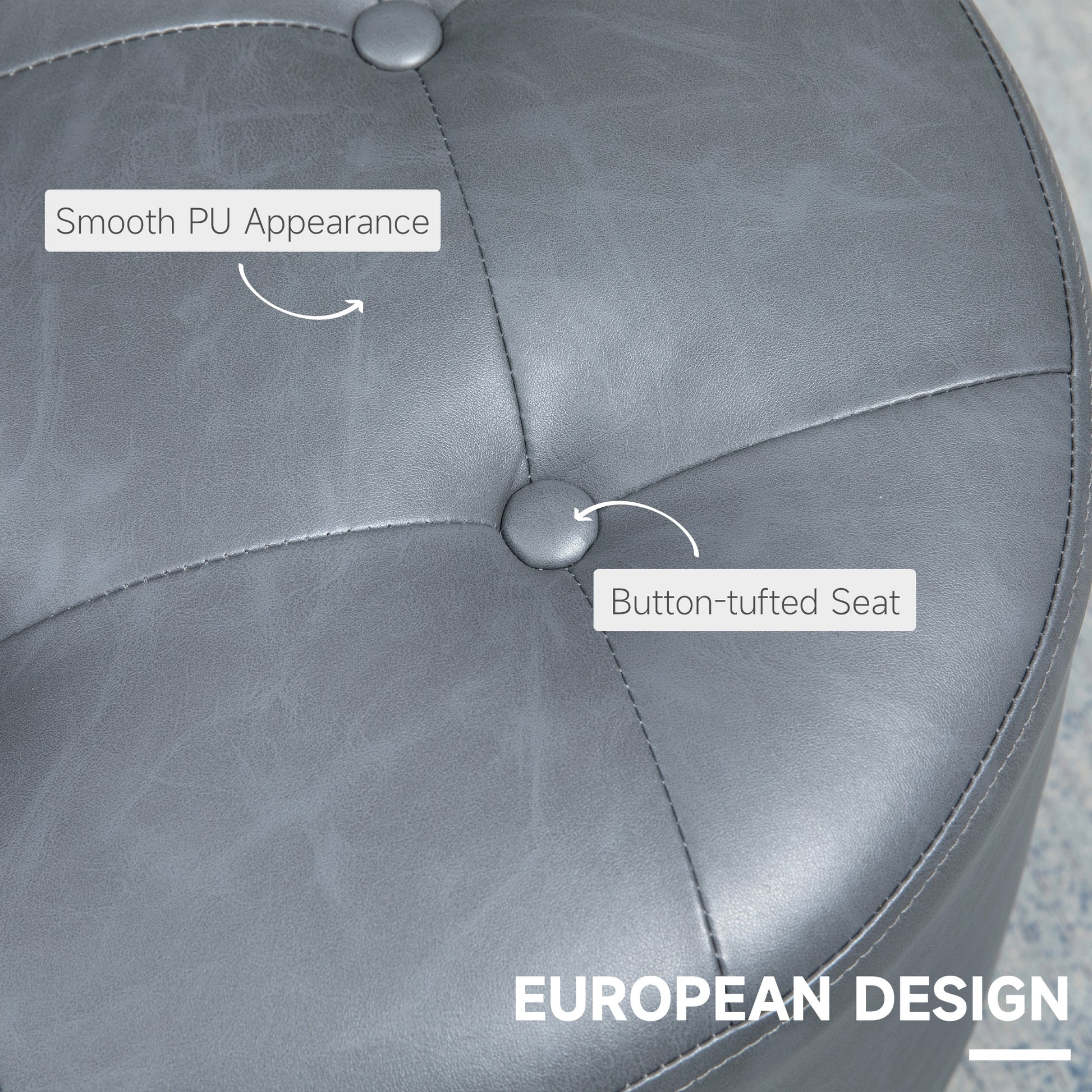 360° Swivel Foot Stool Round PU Ottoman with Thick Sponge Padding and Solid Steel Base, Grey