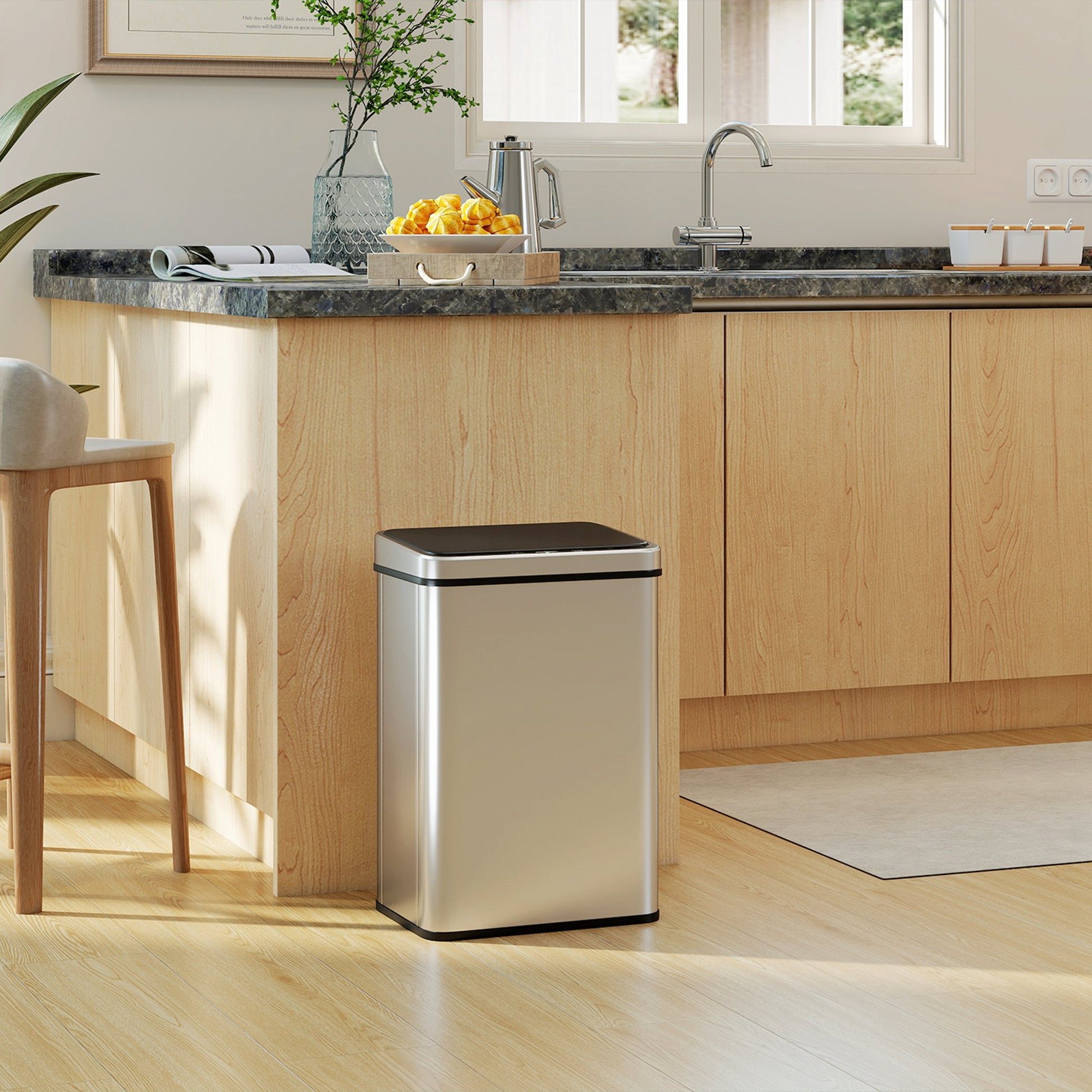 40L Sensor Bin with Quiet Soft-Close Lid, Automatic Touch-less Motion Sensor Kitchen Bin with Fingerprint Resistant Stainless Steel, Silver Tone