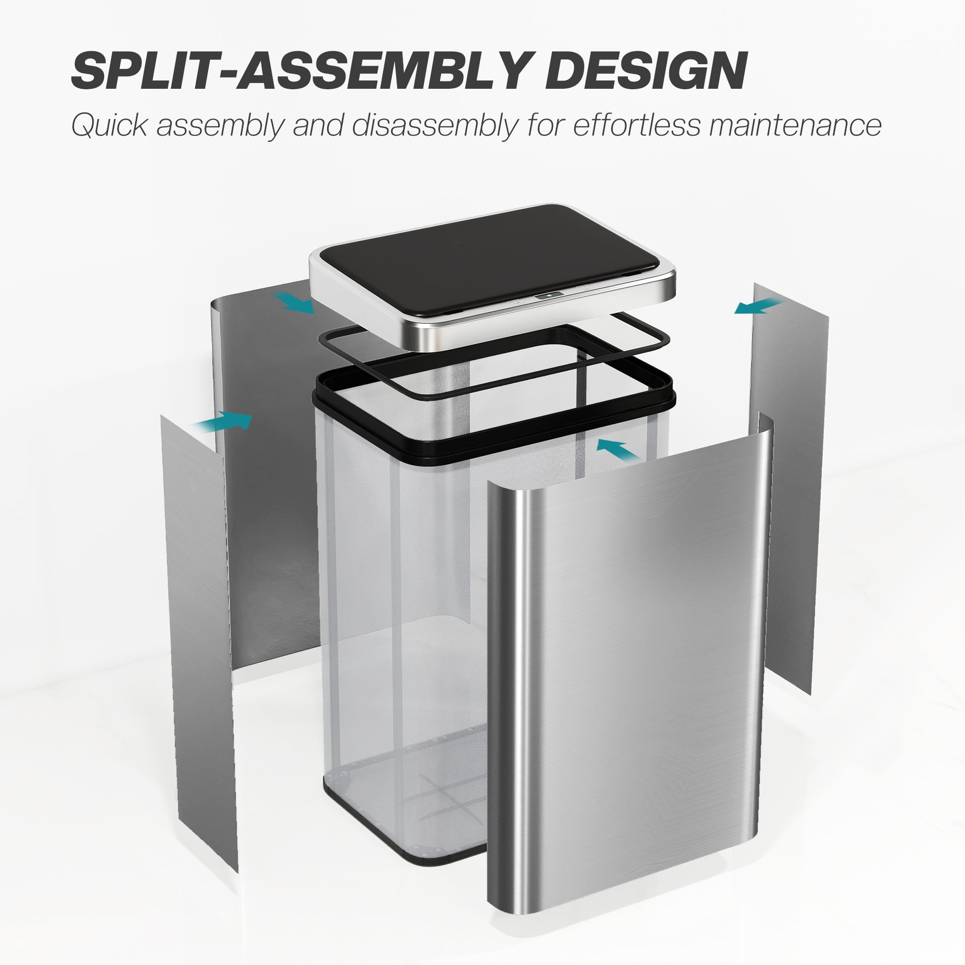 Struggling with messy hands during food prep, leaving smudges on your bin? Those hard-to-reach dust spots only add to the frustration. The HOMCOM sensor bin offers a touch-free solution, opening instantly with a wave. Its detachable construction makes assembly and disassembly easy, while fingerprint-resistant stainless steel keeps your kitchen bin looking immaculate, restoring ease and tidiness to your space.