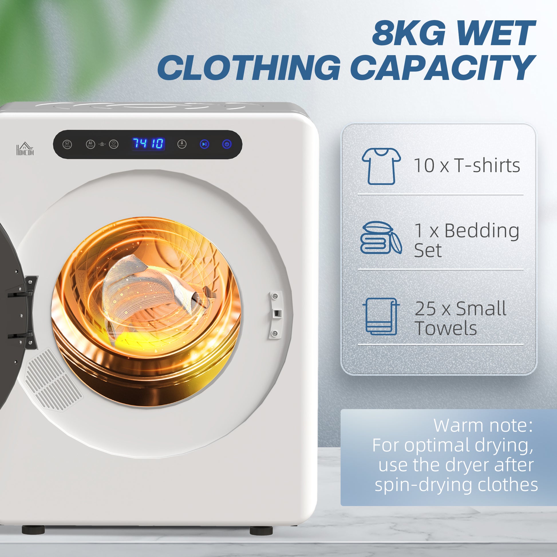 Meet the HOMCOM 4kg Tumble Dryer, a compact powerhouse great for cosy spaces. With a 1000W motor, this small tumble dryer handles up to 4kg of wet clothes, offering both 'Extra Dry' and smart auto-adjust drying modes. Enjoy the convenience of a digital display and dual-temperature controls, making laundry day a breeze in any small flat.