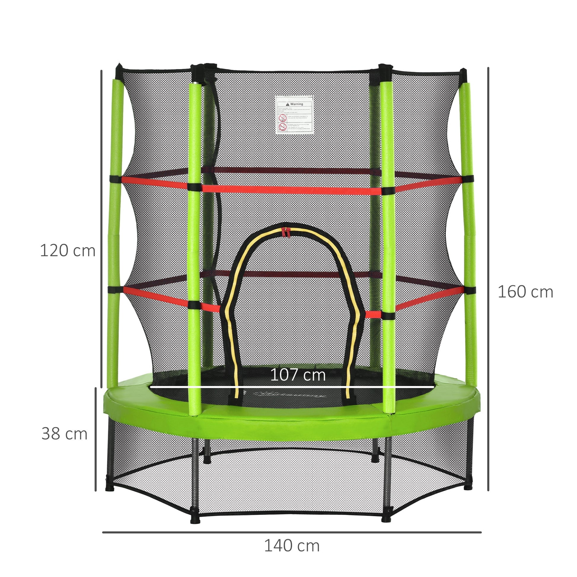 5.2FT/63 Inch Kids Trampoline with Enclosure Net Steel Frame Indoor Round Bouncer Rebounder Age 3 to 6 Years Old Green