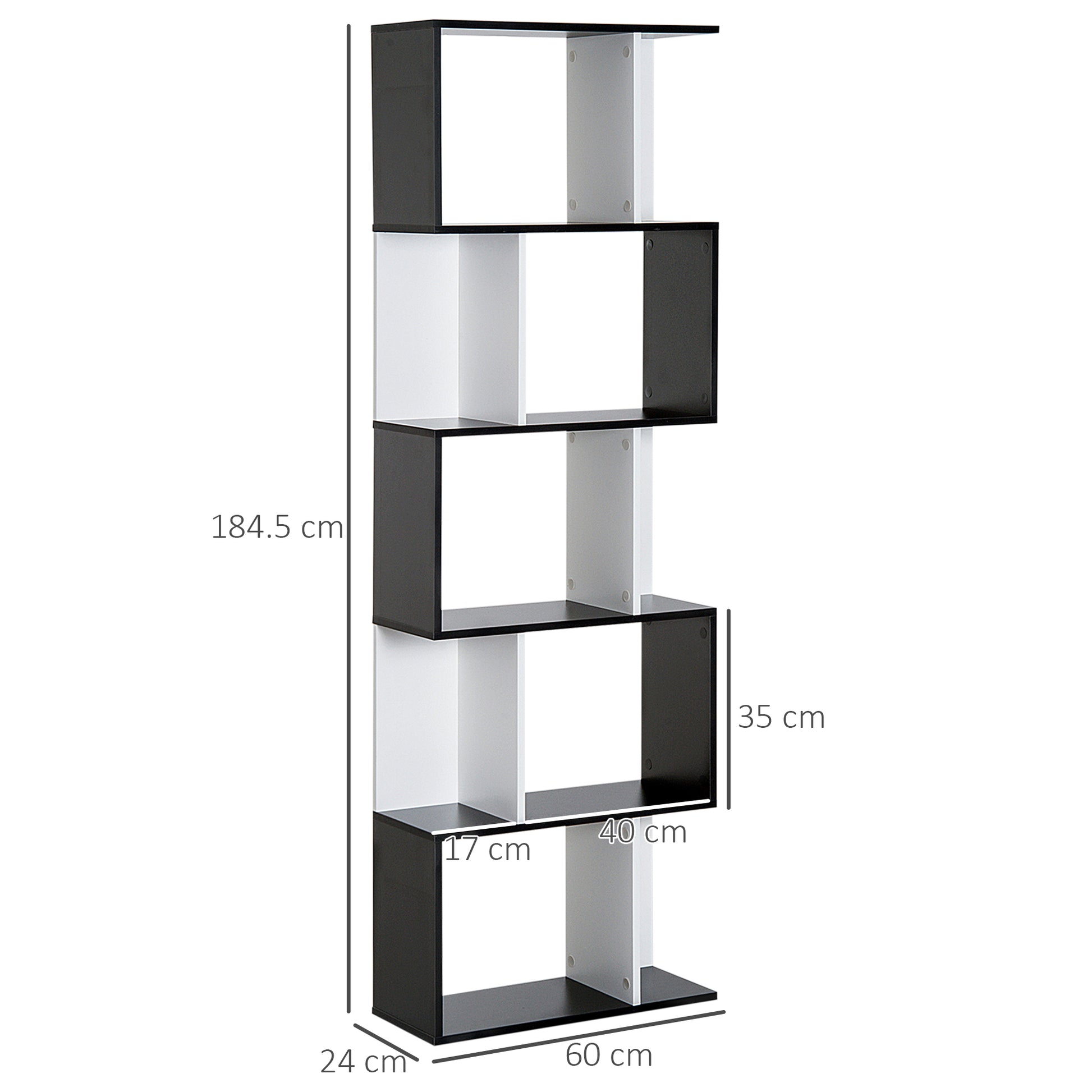 Tired of the same old look? Break away from the norm with the unique and contemporary style of this S-shape bookcase from HOMCOM. Five shelves of storage make it easy to display your favorite books, photos, collectables and more. Best of all, thanks to an open-back design, it doubles as a bookshelf and room divider.