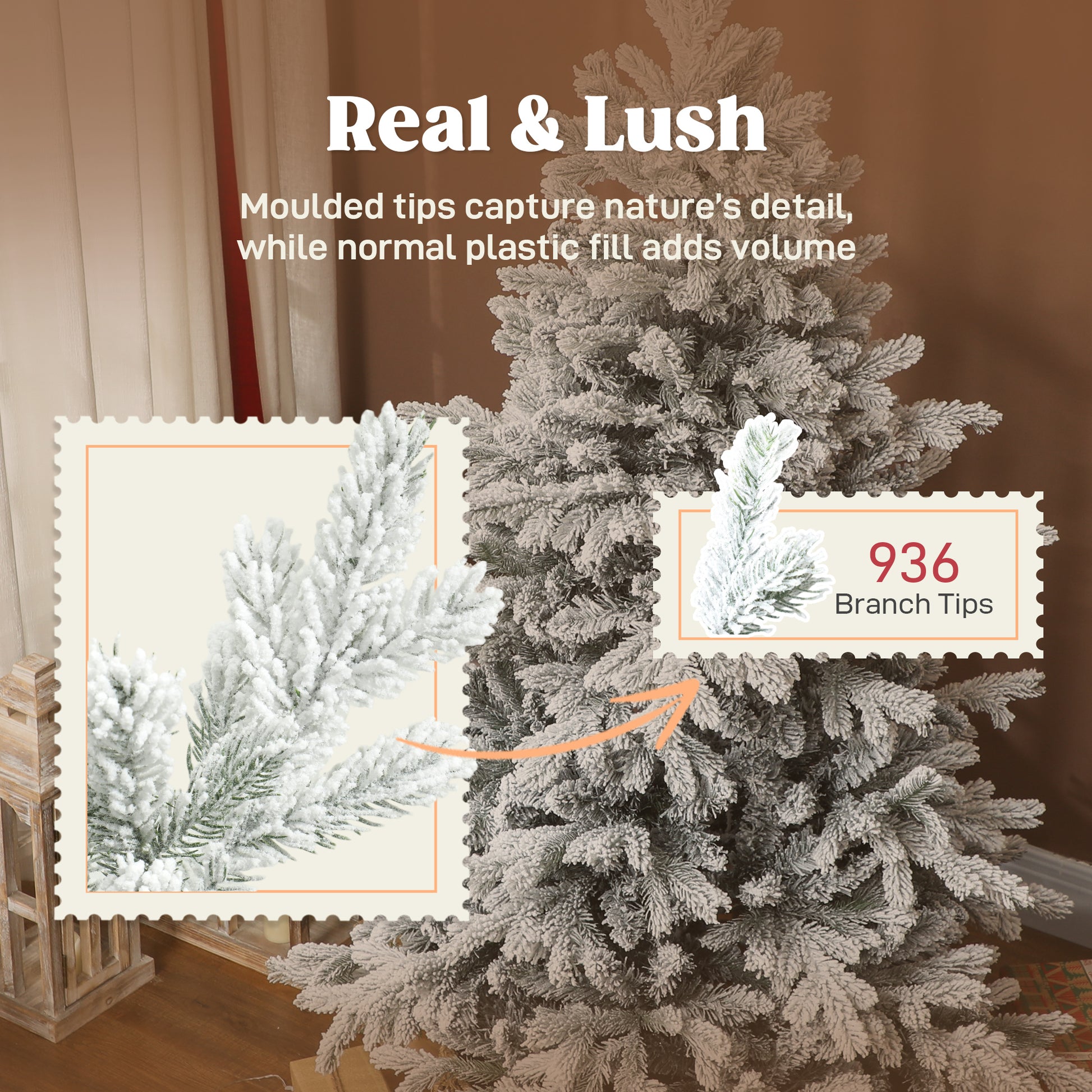 - Flocked tips, wide shape, creating a lush winter wonderland look