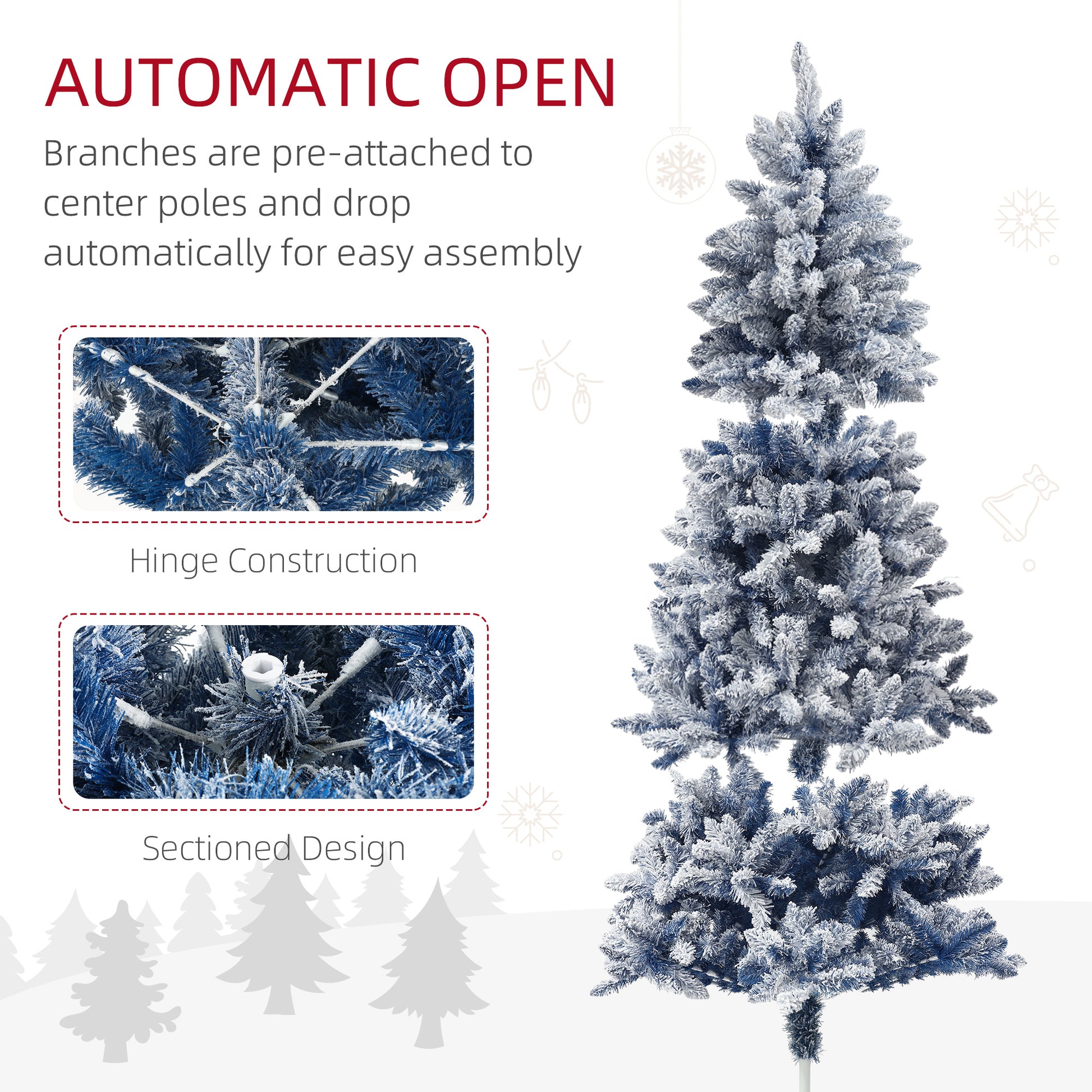 6ft Flocked Artificial Christmas Tree with 700 Snow Frosted Tips, Metal Stand, Snowy Hinged Xmas Tree, Blue