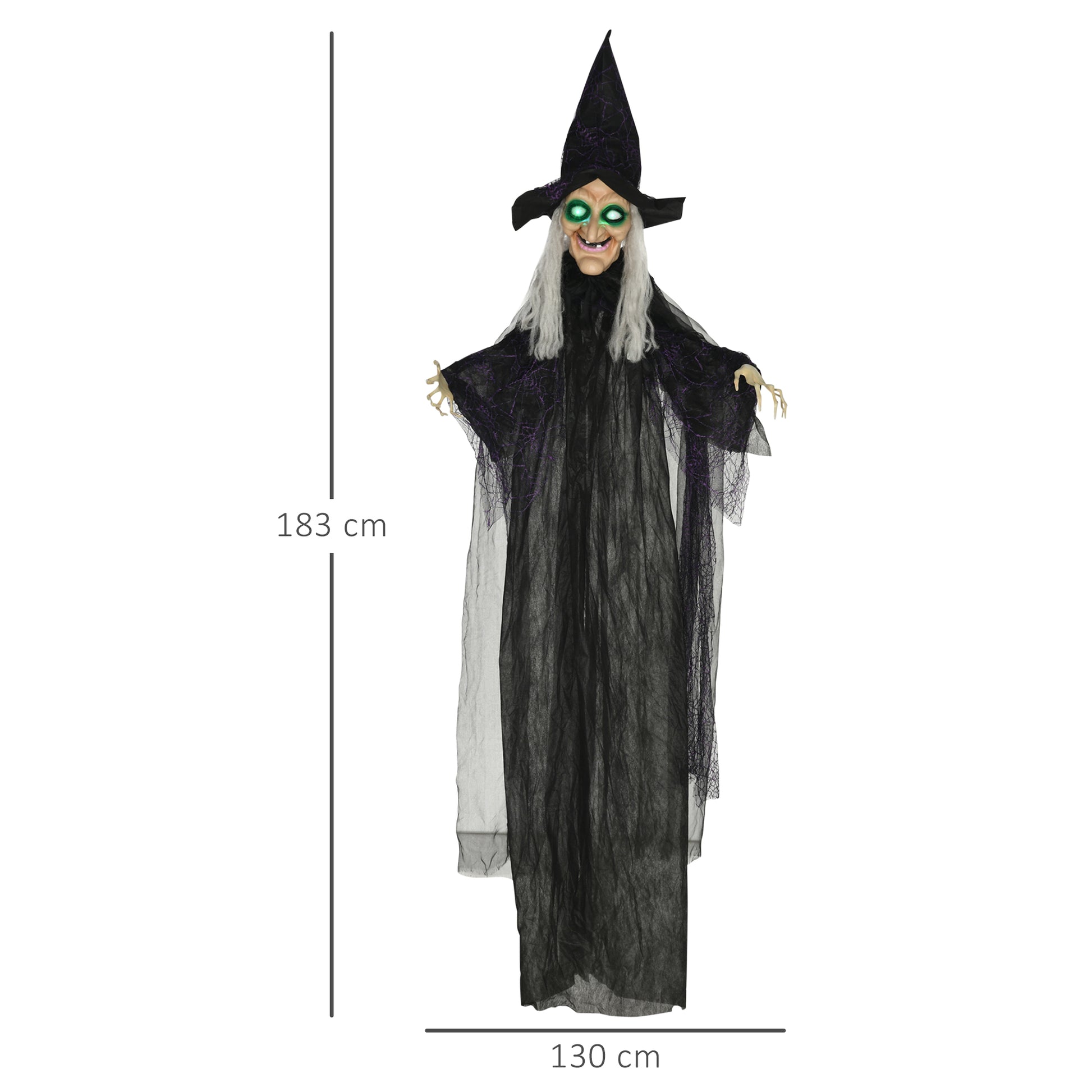 6ft Outdoor Halloween Decoration Witch, Standing Witch Prop Life Size with Sound and Motion Activated, Light Up Eyes, Talking Sound, Posable Arms