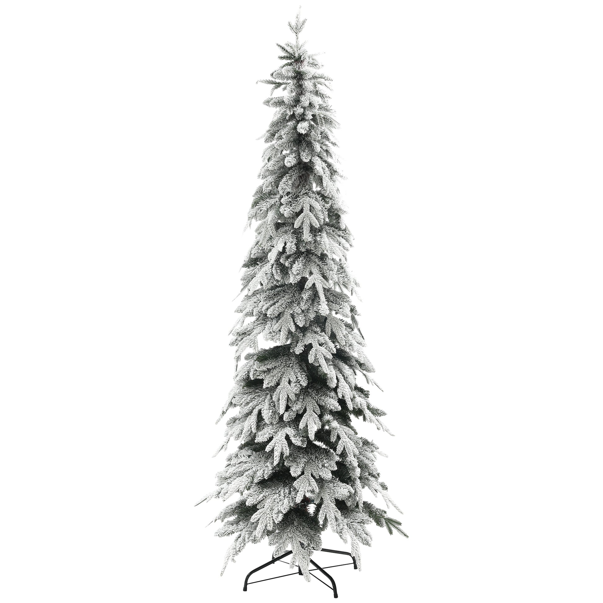 7ft Pencil Artificial Christmas Tree, Snow Flocked Xmas Tree with Downswept Branches and 800 Tips, Auto Open, Steel Base, Holiday Decoration for Home Office, Green