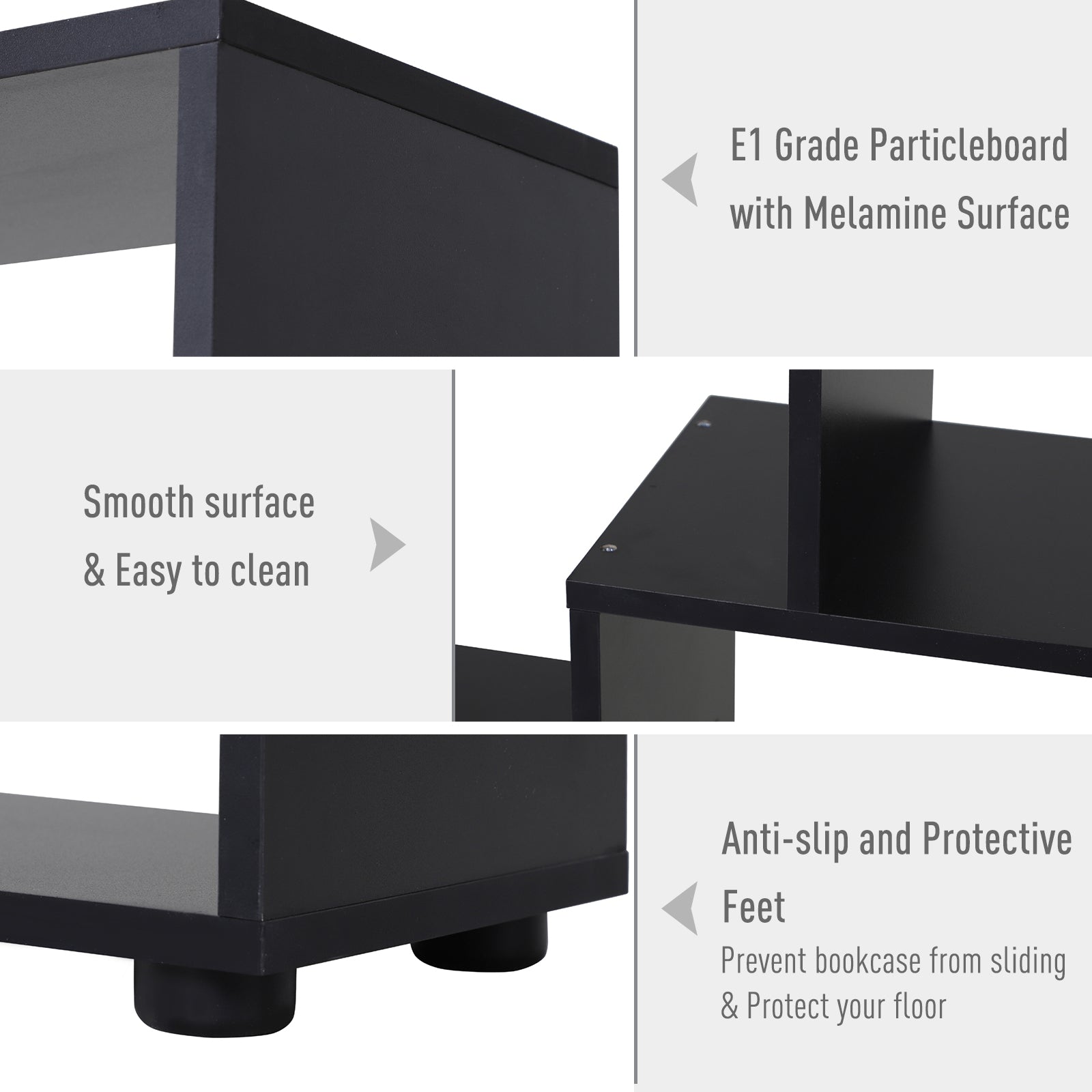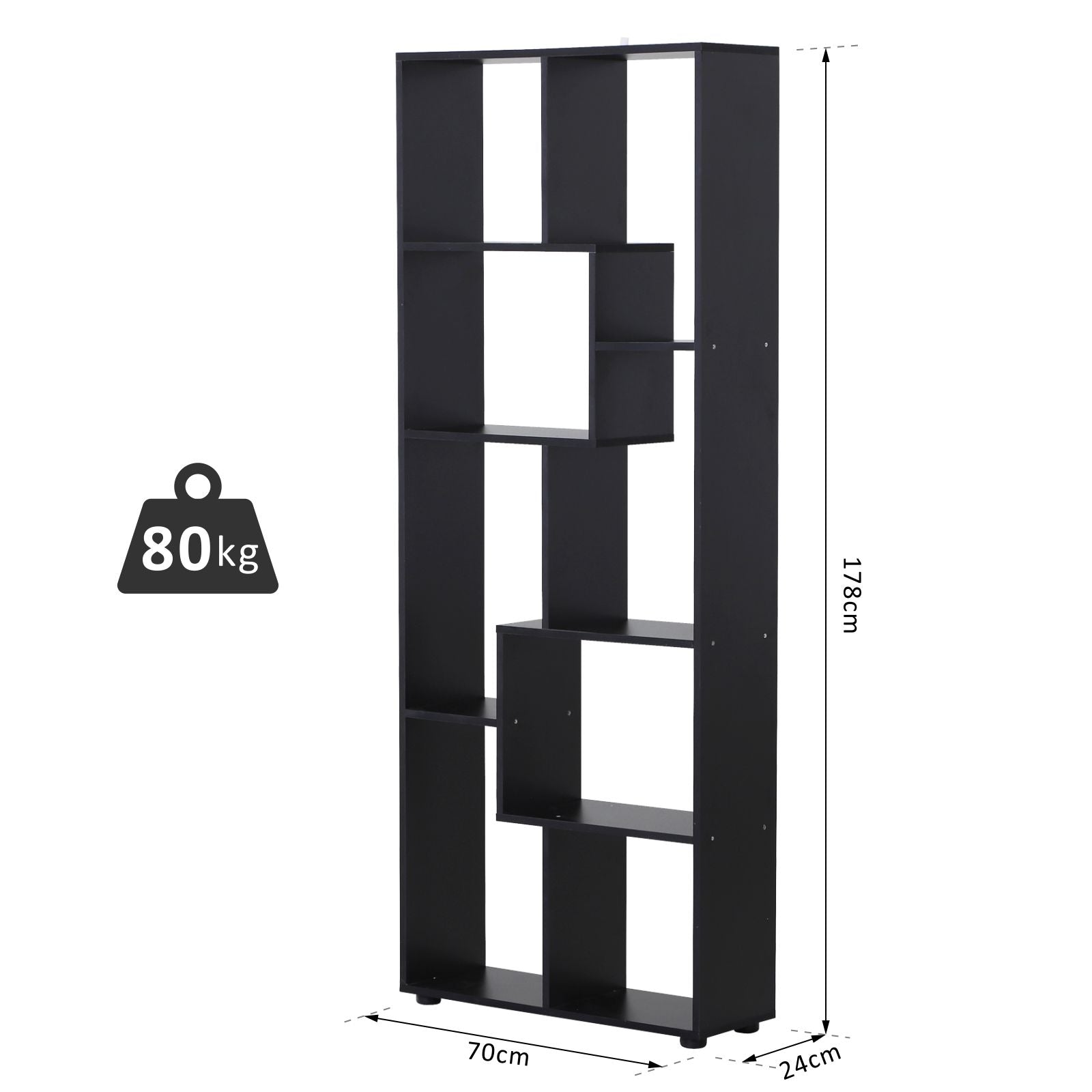 8-Tier Freestanding Bookcase w/ Melamine Surface Anti-Tipping Foot Pads Home Display Storage Grid Stand Modern Style - Black