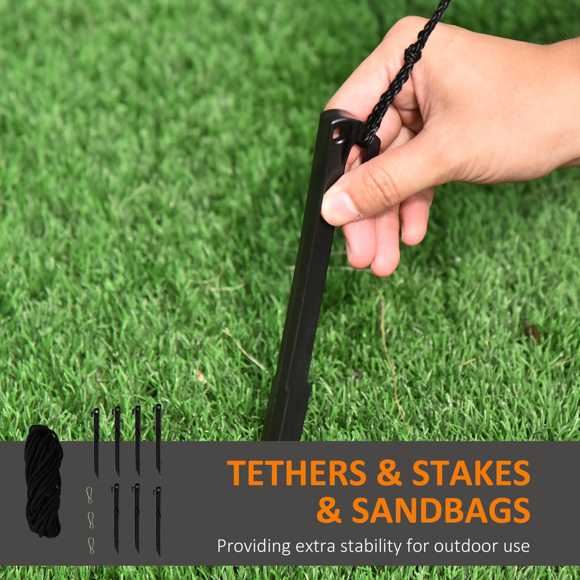 - Comes with inner fan, 3 x guy ropes, 7 x ground stakes and 3 x sandbags