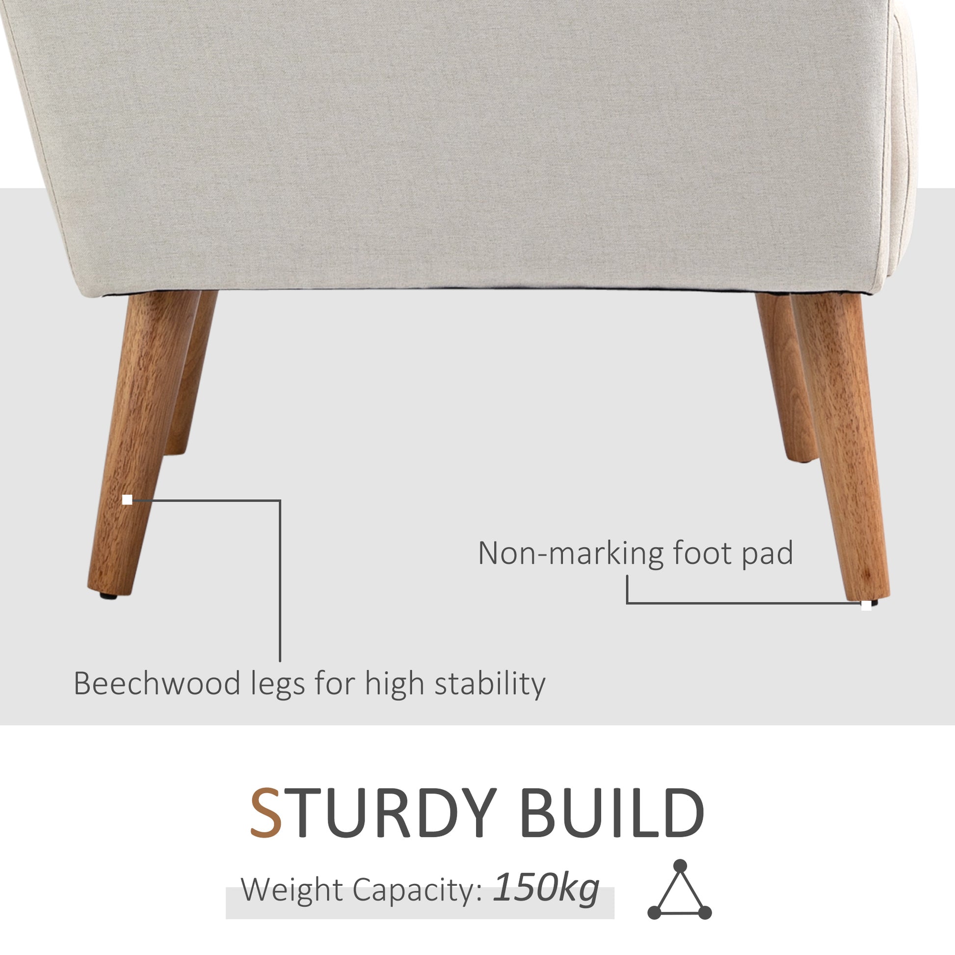Accent Chair, Linen-Touch Armchair, Upholstered Leisure Lounge Sofa, Club Chair with Wooden Frame, Cream